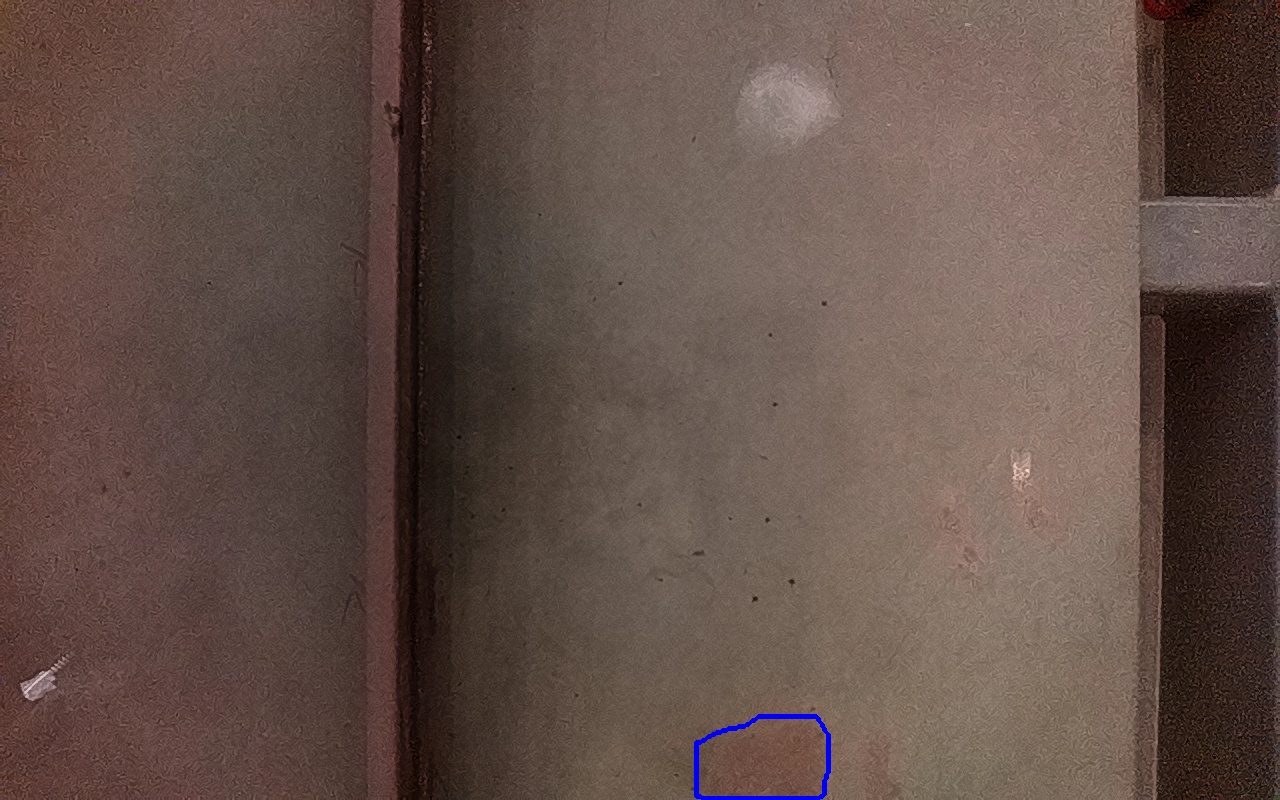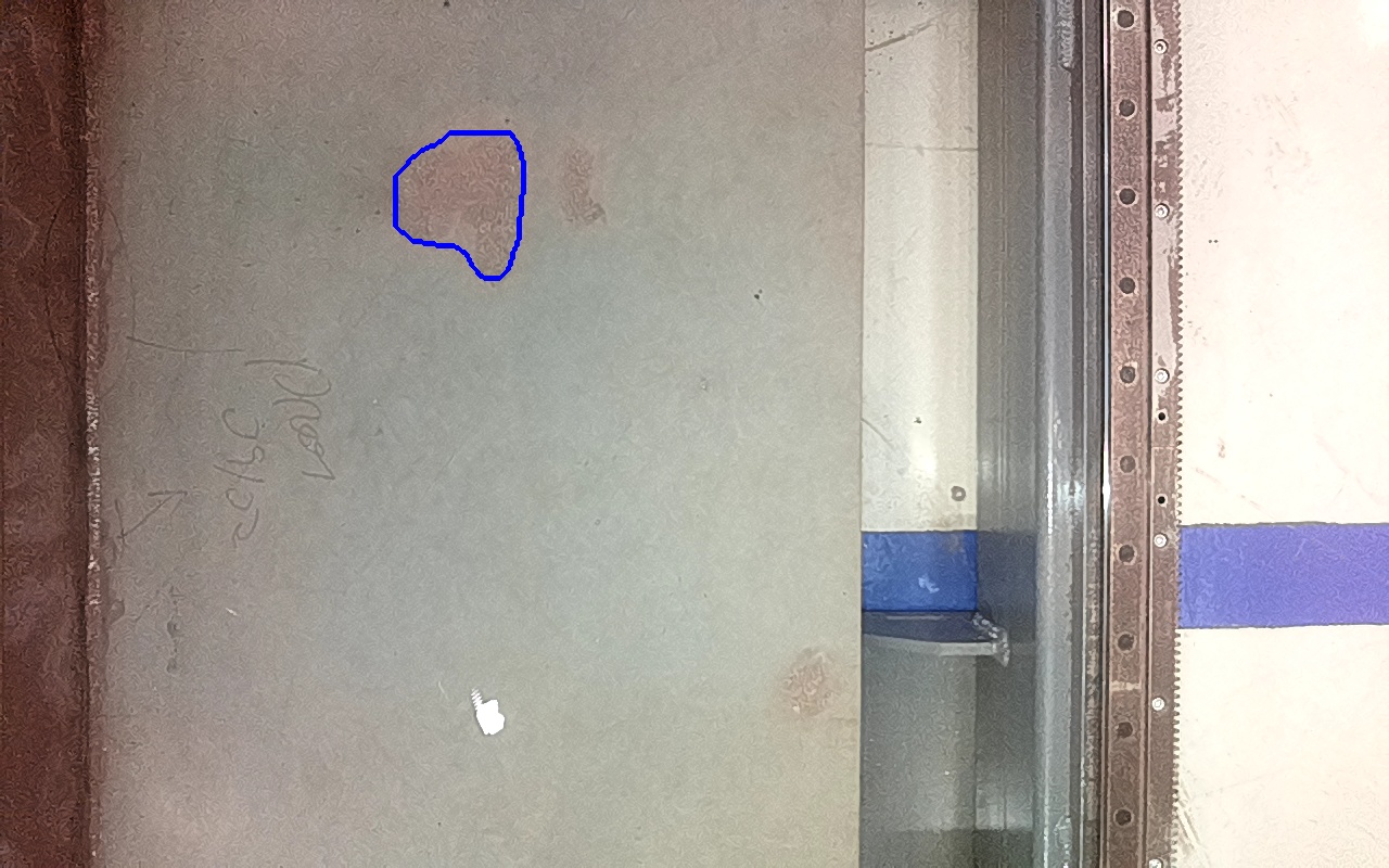Rayaduras o zonas de metal expuestas con productos de óxido débilmente adherido.