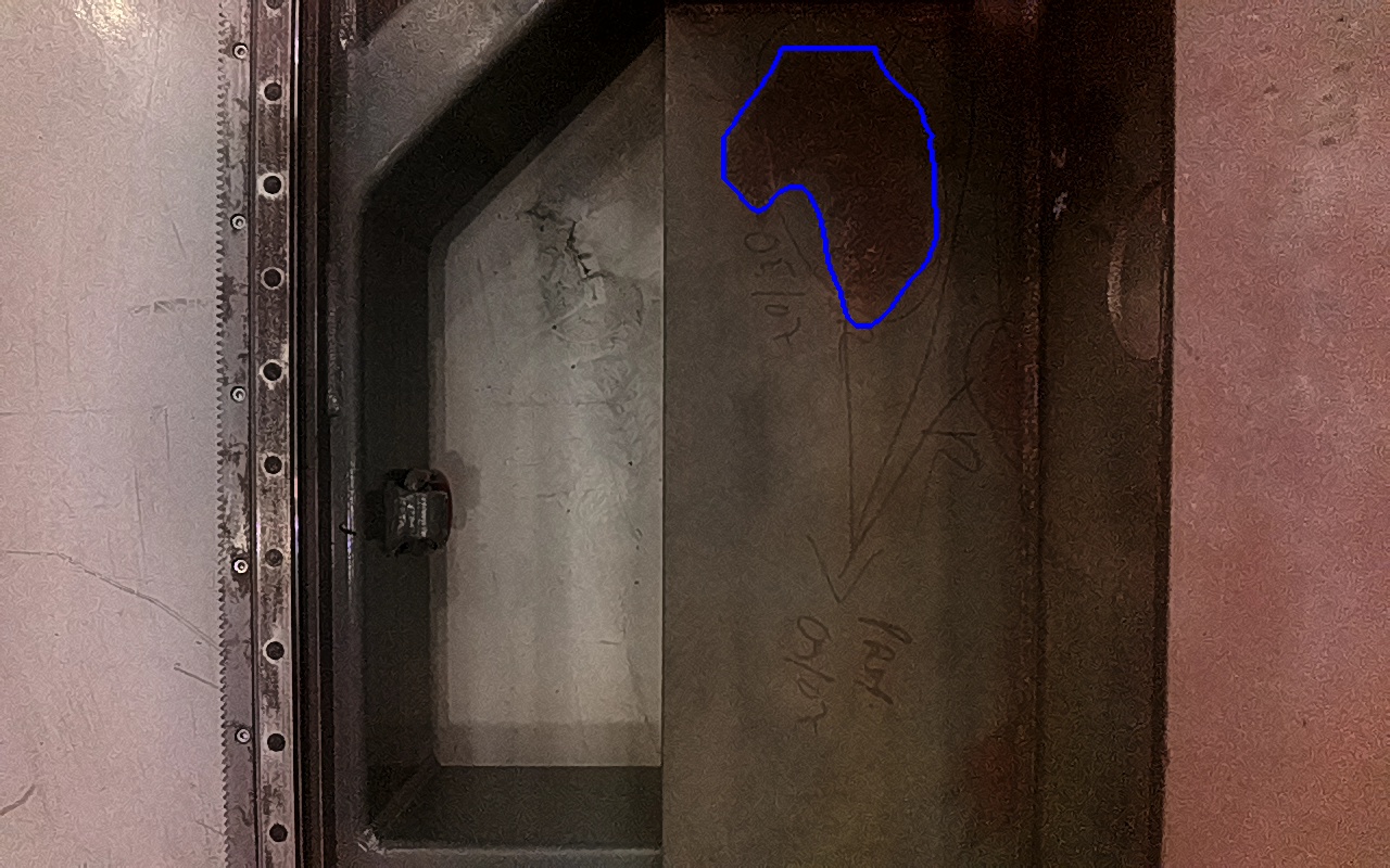 Residuos metálicos adheridos a la superficie, provenientes de operaciones adyacentes de fabricación y montaje. |