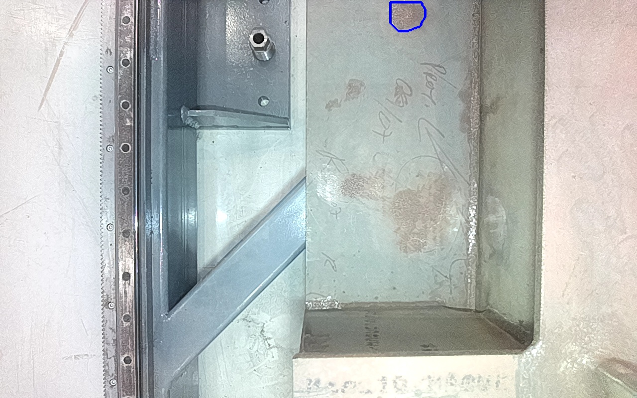 Rayaduras o zonas de metal expuestas con productos de óxido débilmente adherido. |