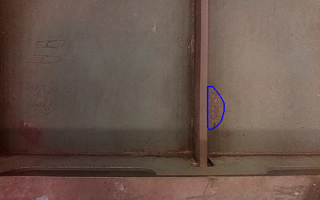 Rayaduras o zonas de metal expuestas con productos de óxido débilmente adherido. |