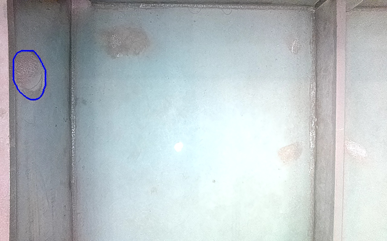 Rayaduras o zonas de metal expuestas con productos de óxido débilmente adherido. |
