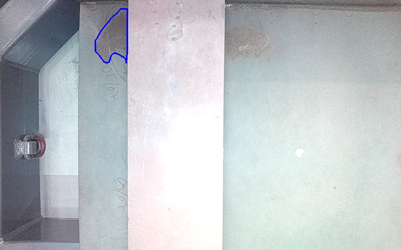 Rayaduras o zonas de metal expuestas con productos de óxido débilmente adherido. |