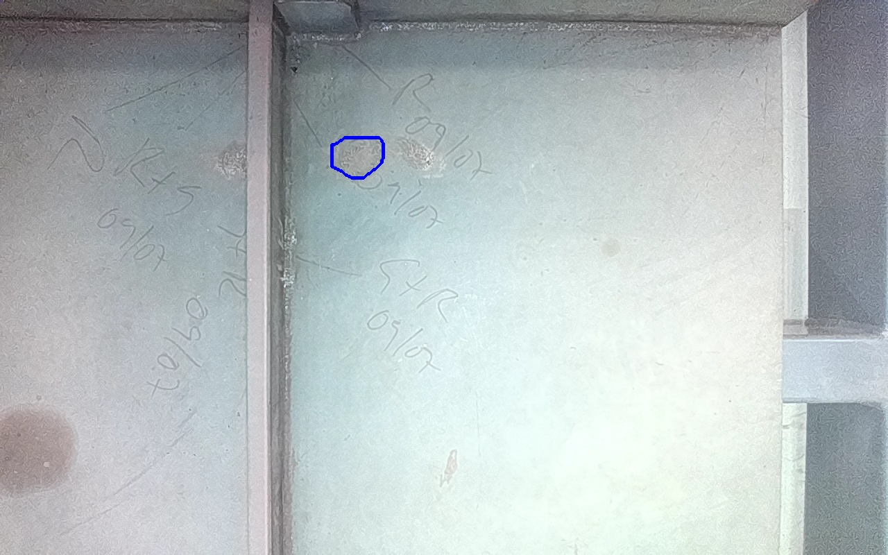 Rayaduras o zonas de metal expuestas con productos de óxido débilmente adherido. |