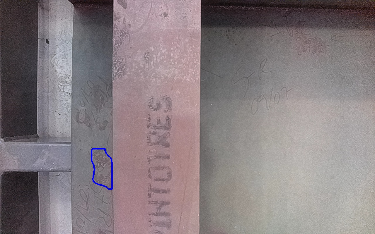 Rayaduras o zonas de metal expuestas con productos de óxido débilmente adherido. |
