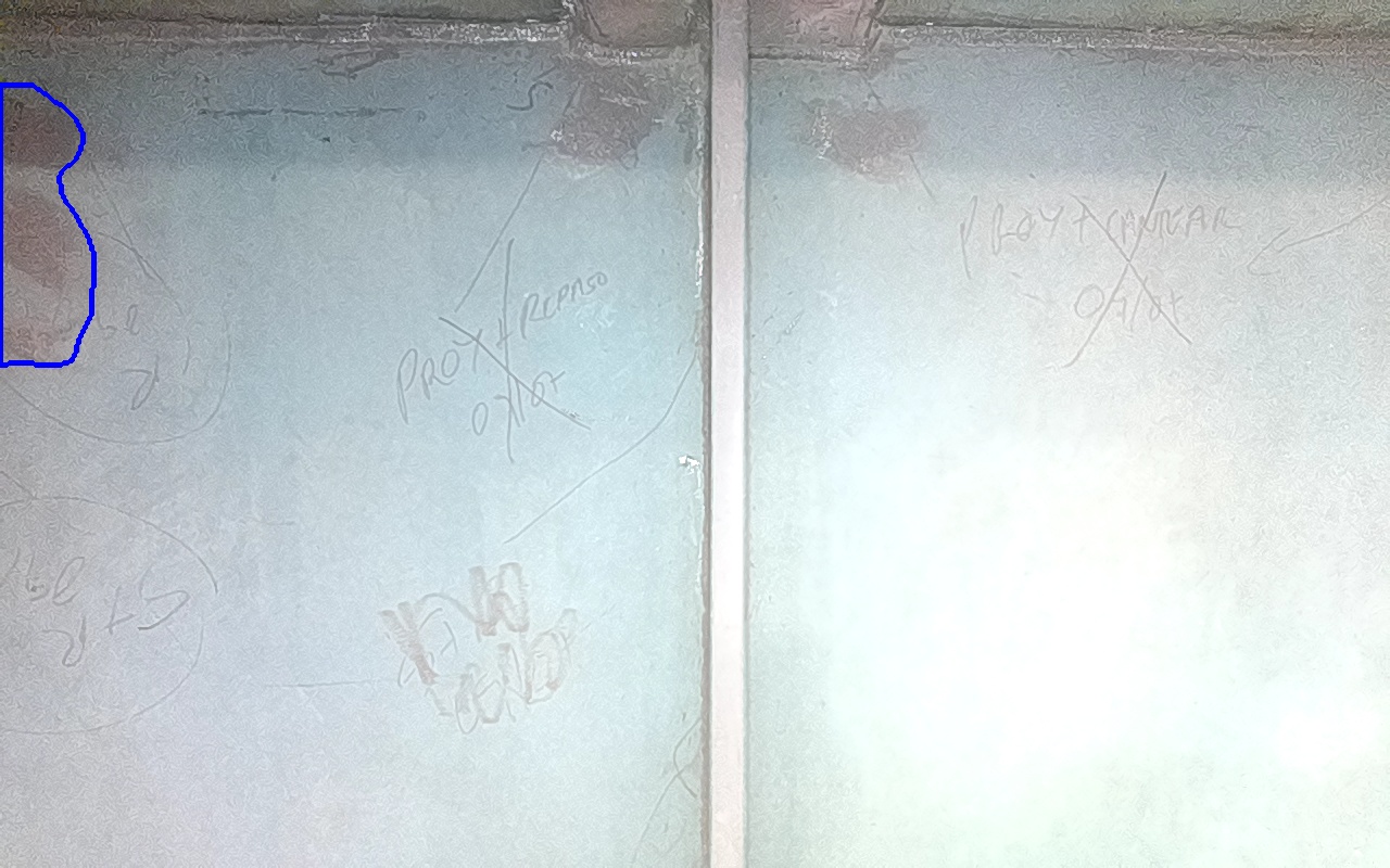 Rayaduras o zonas de metal expuestas con productos de óxido débilmente adherido. |