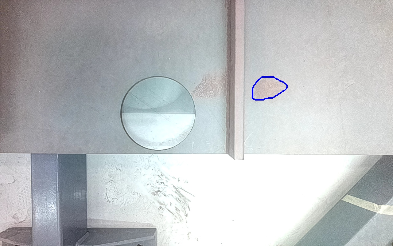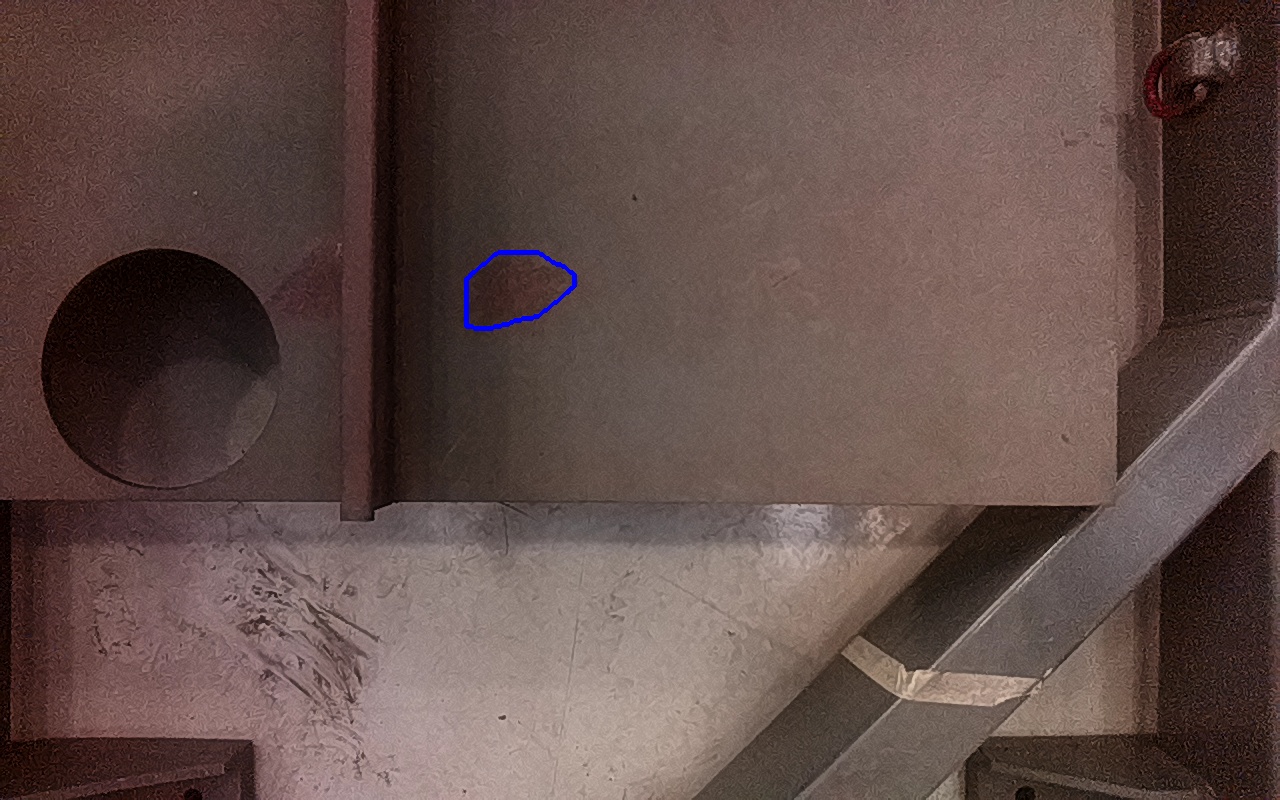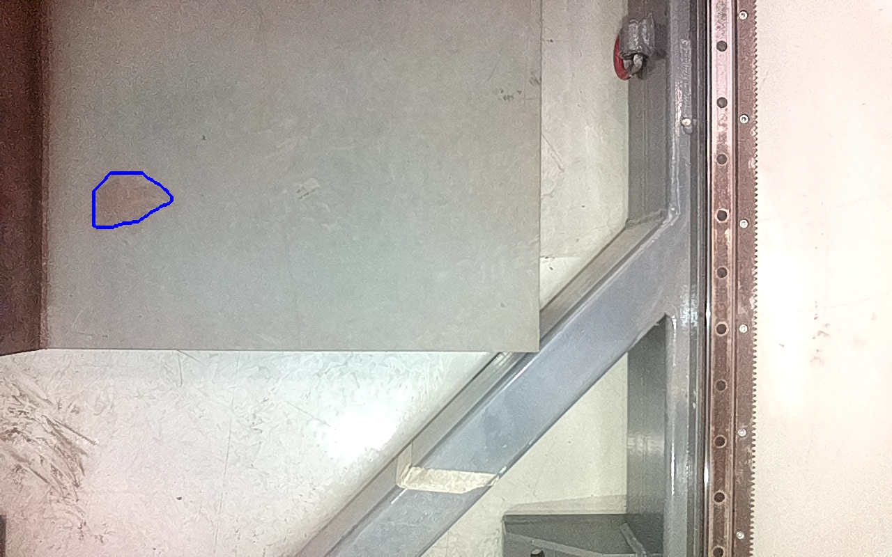 Rayaduras o zonas de metal expuestas con productos de óxido débilmente adherido.