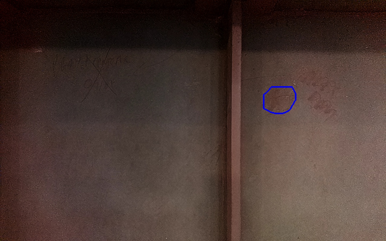 Rayaduras o zonas de metal expuestas con productos de óxido débilmente adherido.