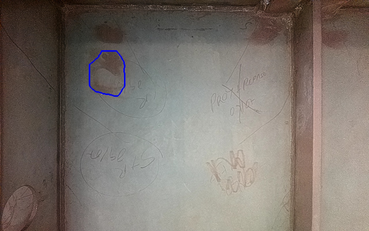 Rayaduras o zonas de metal expuestas con productos de óxido débilmente adherido.