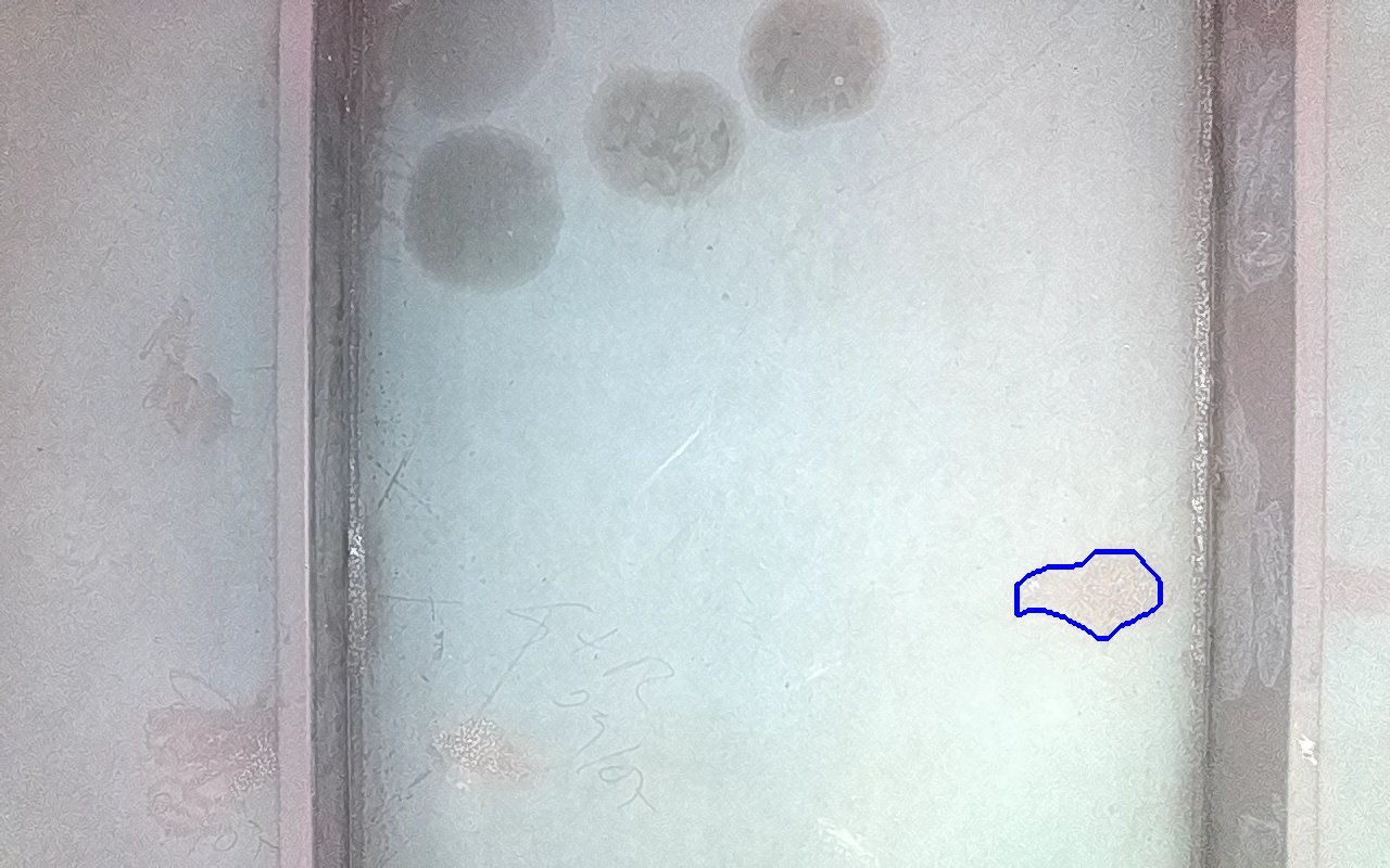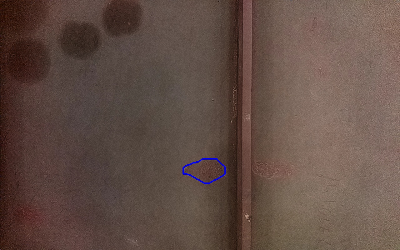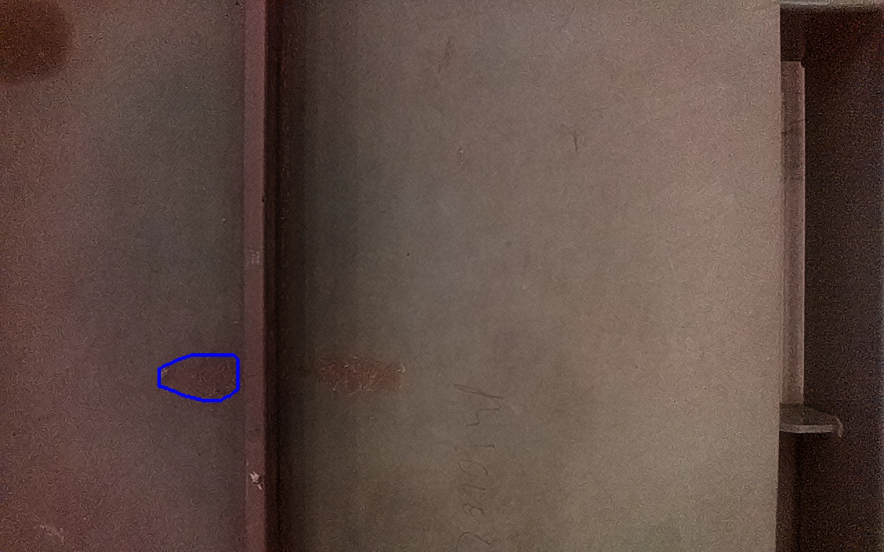 Rayaduras o zonas de metal expuestas con productos de óxido débilmente adherido.