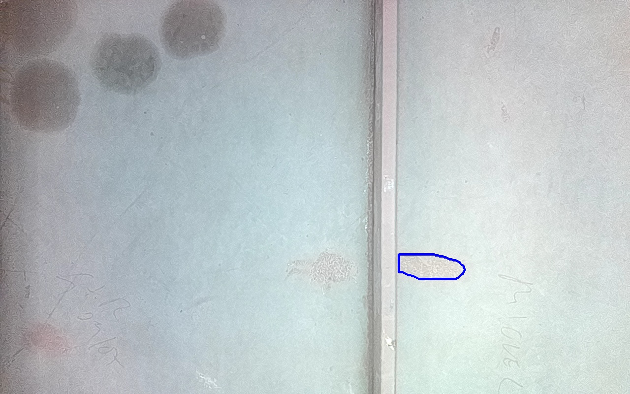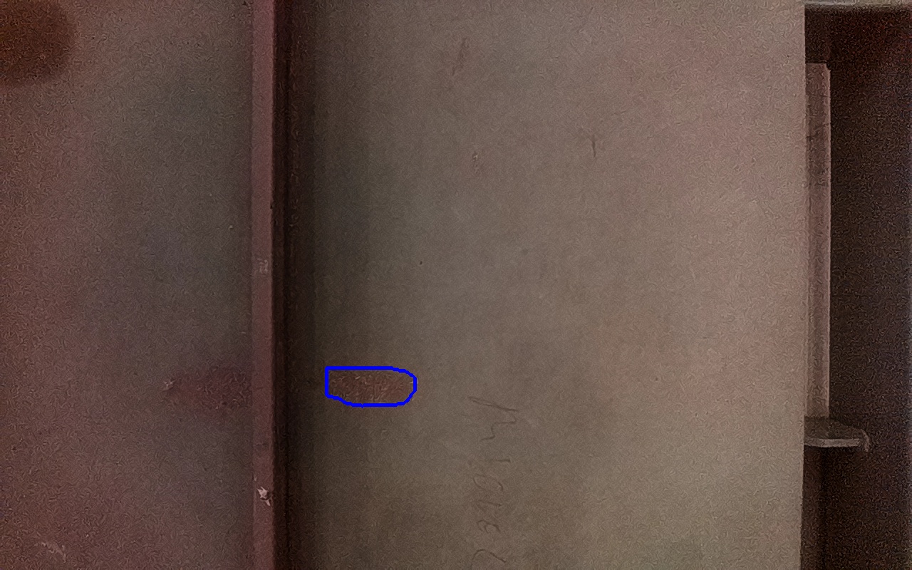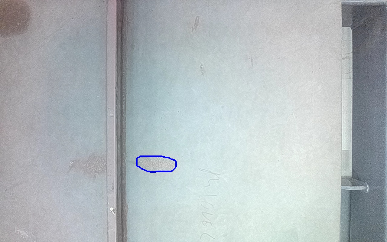 Rayaduras o zonas de metal expuestas con productos de óxido débilmente adherido.