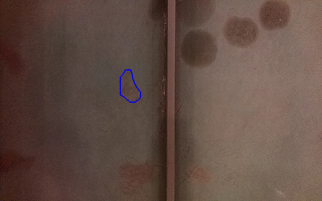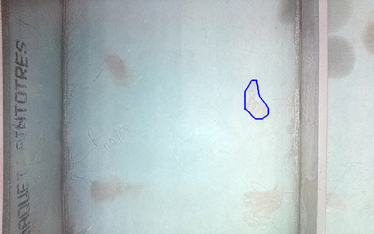 Rayaduras o zonas de metal expuestas con productos de óxido débilmente adherido.