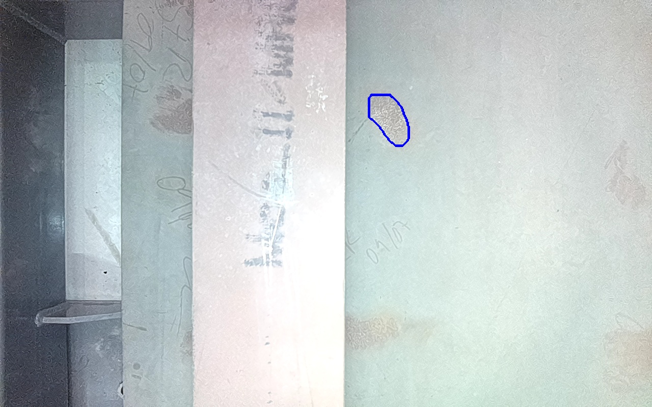 Rayaduras o zonas de metal expuestas con productos de óxido débilmente adherido.