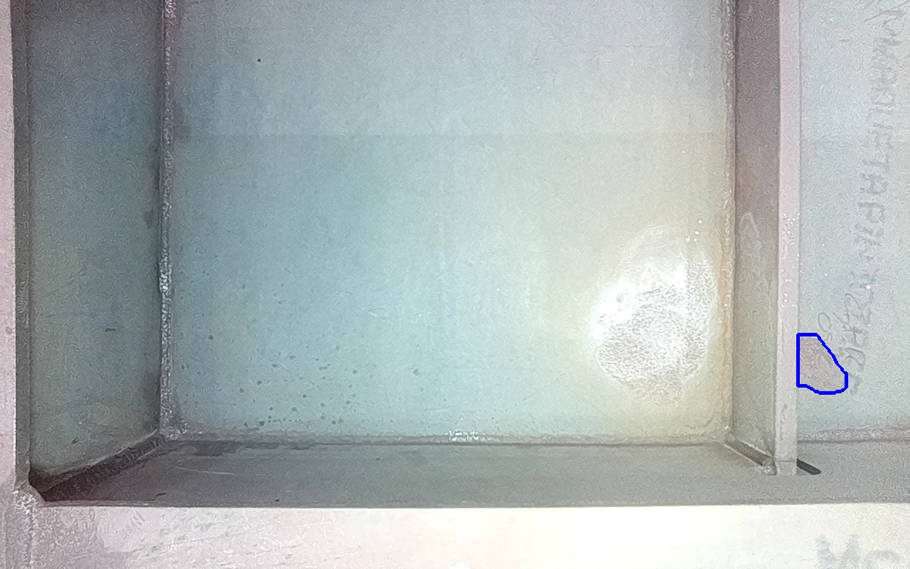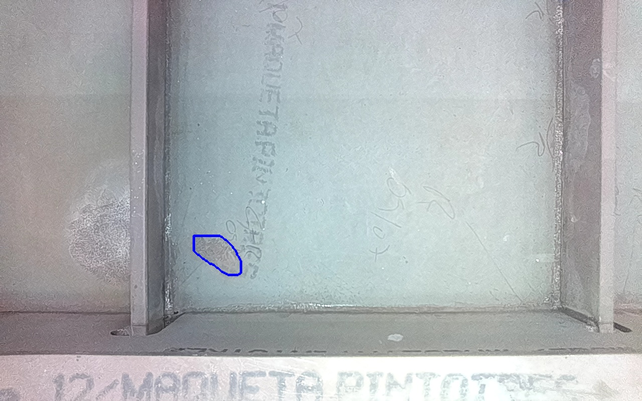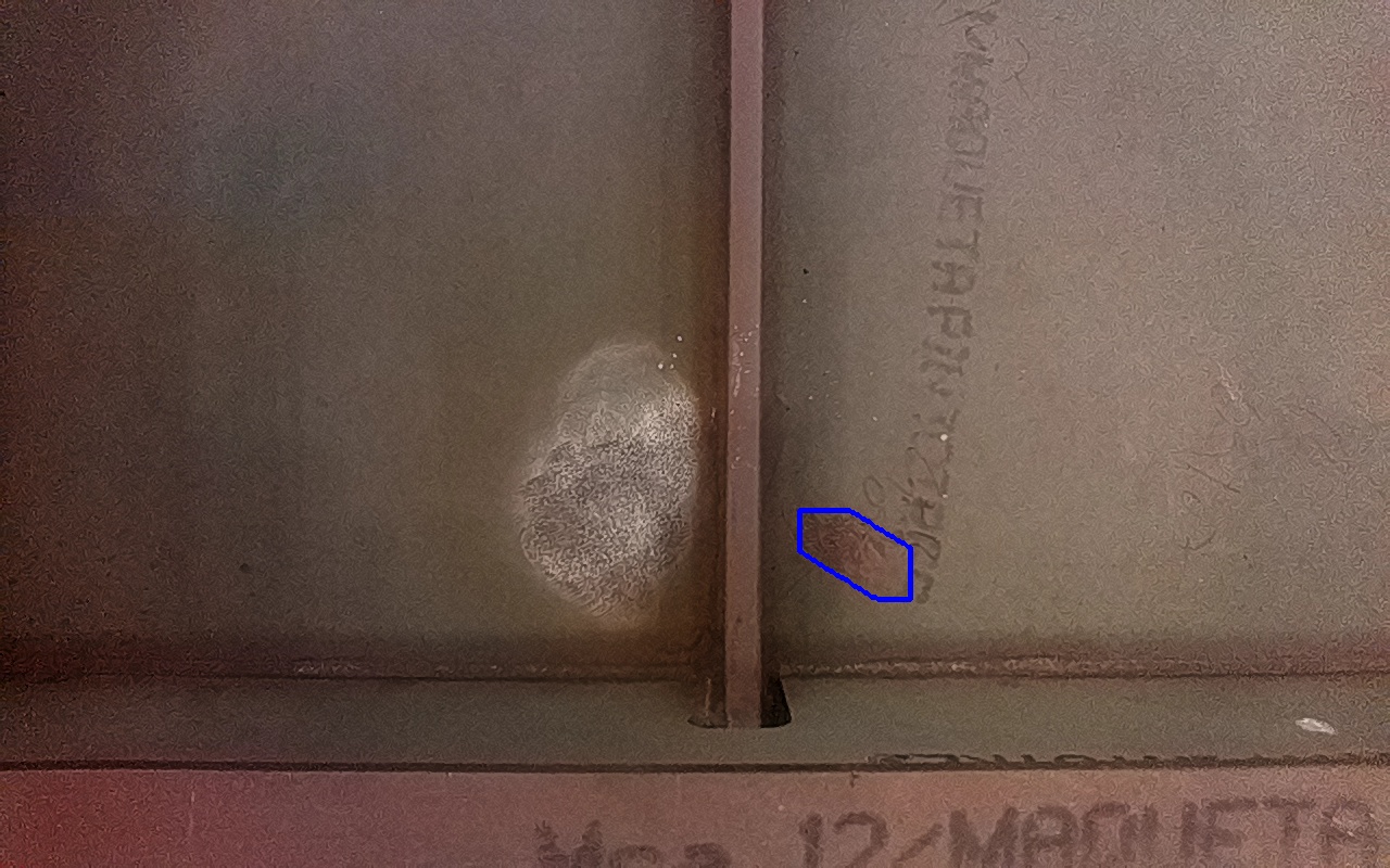 Rayaduras o zonas de metal expuestas con productos de óxido débilmente adherido.