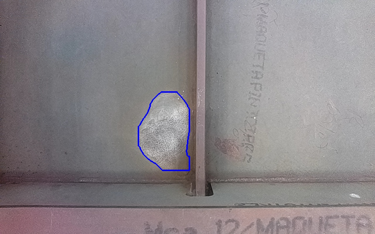 Rayaduras o zonas de metal expuestas con productos de óxido débilmente adherido.
