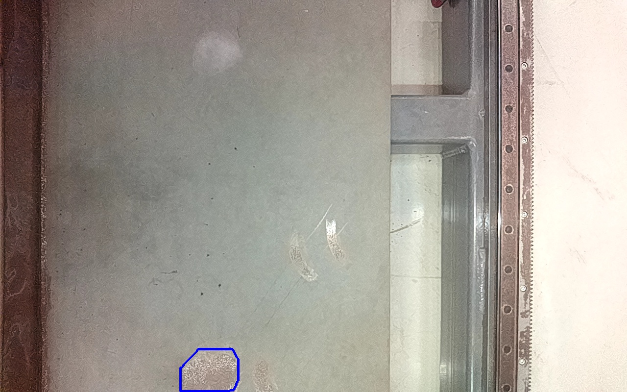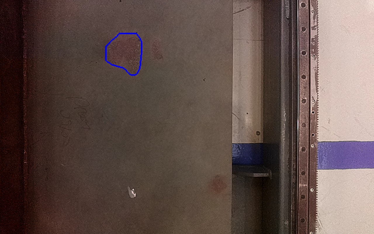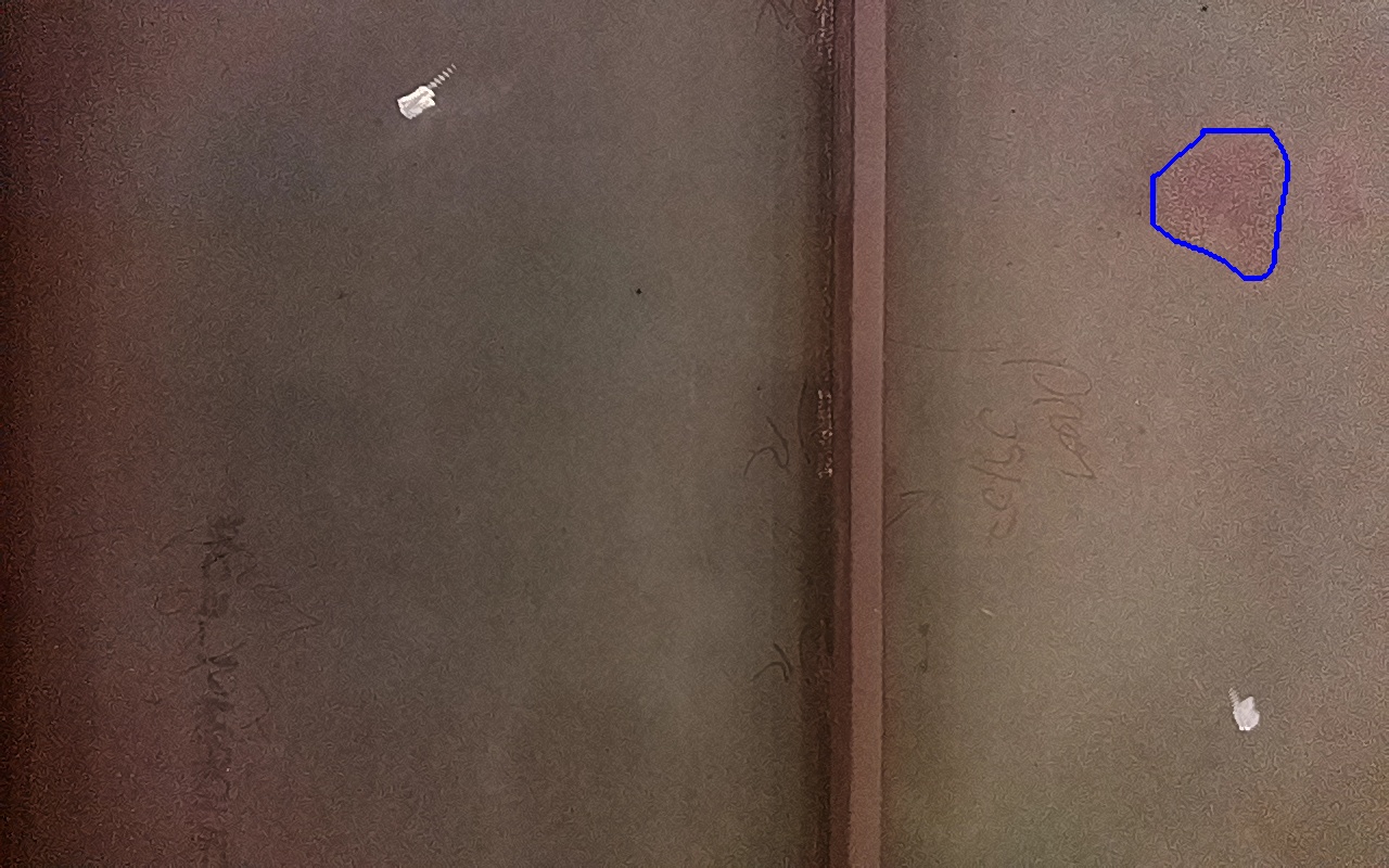 Rayaduras o zonas de metal expuestas con productos de óxido débilmente adherido.