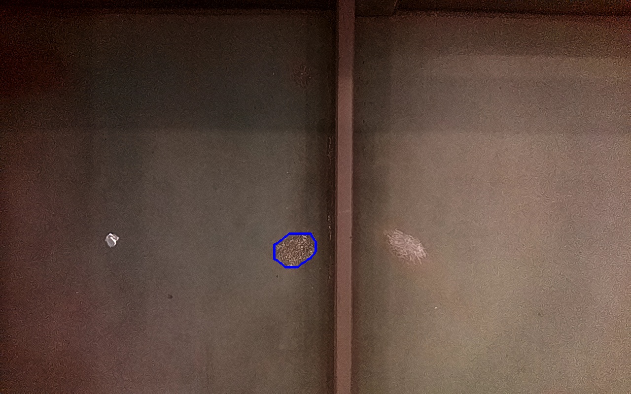 Rayaduras o zonas de metal expuestas con productos de óxido débilmente adherido.