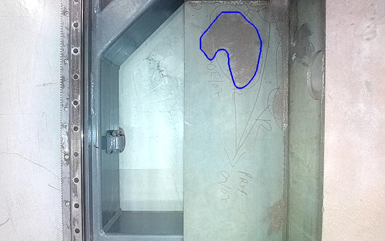 Rayaduras o zonas de metal expuestas con productos de óxido débilmente adherido.