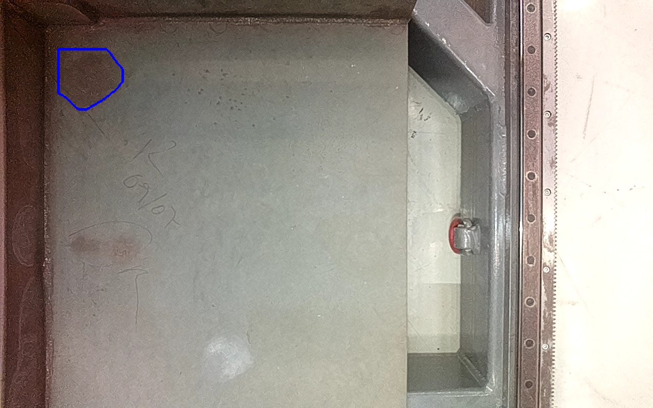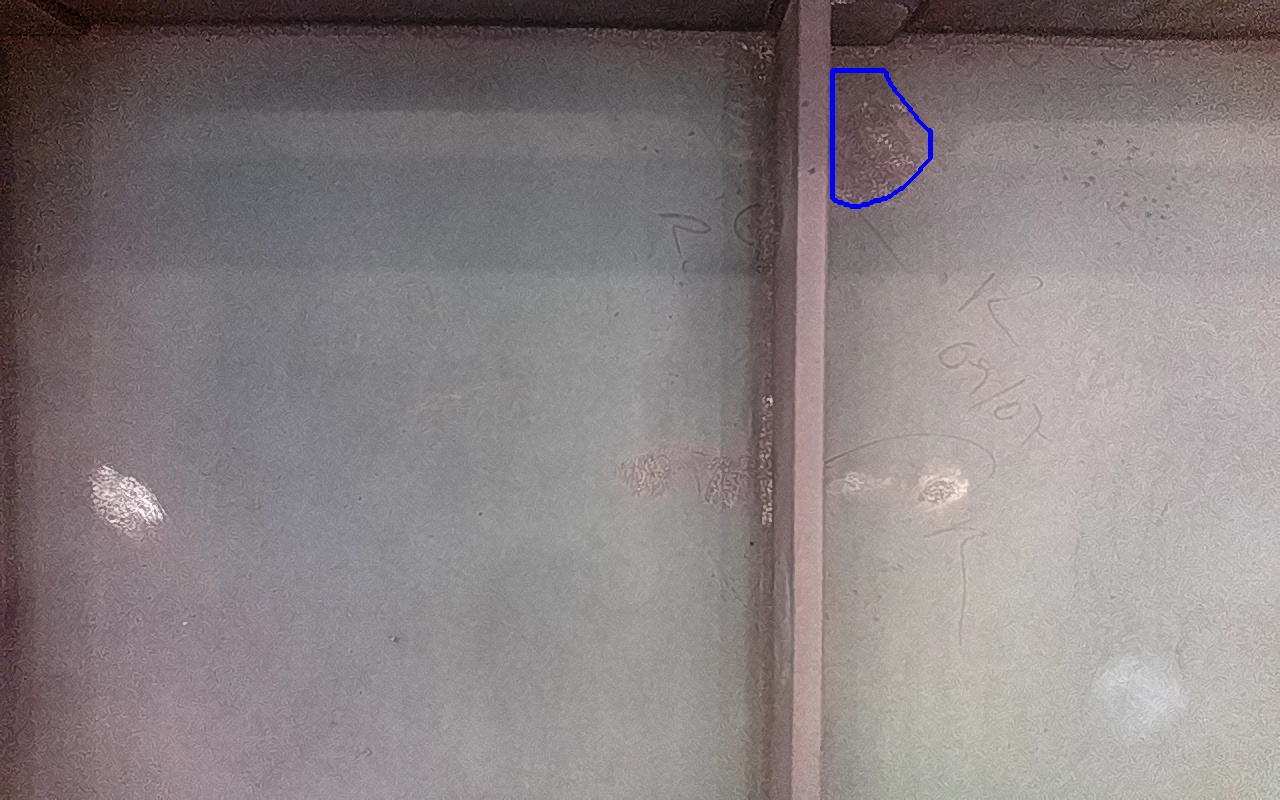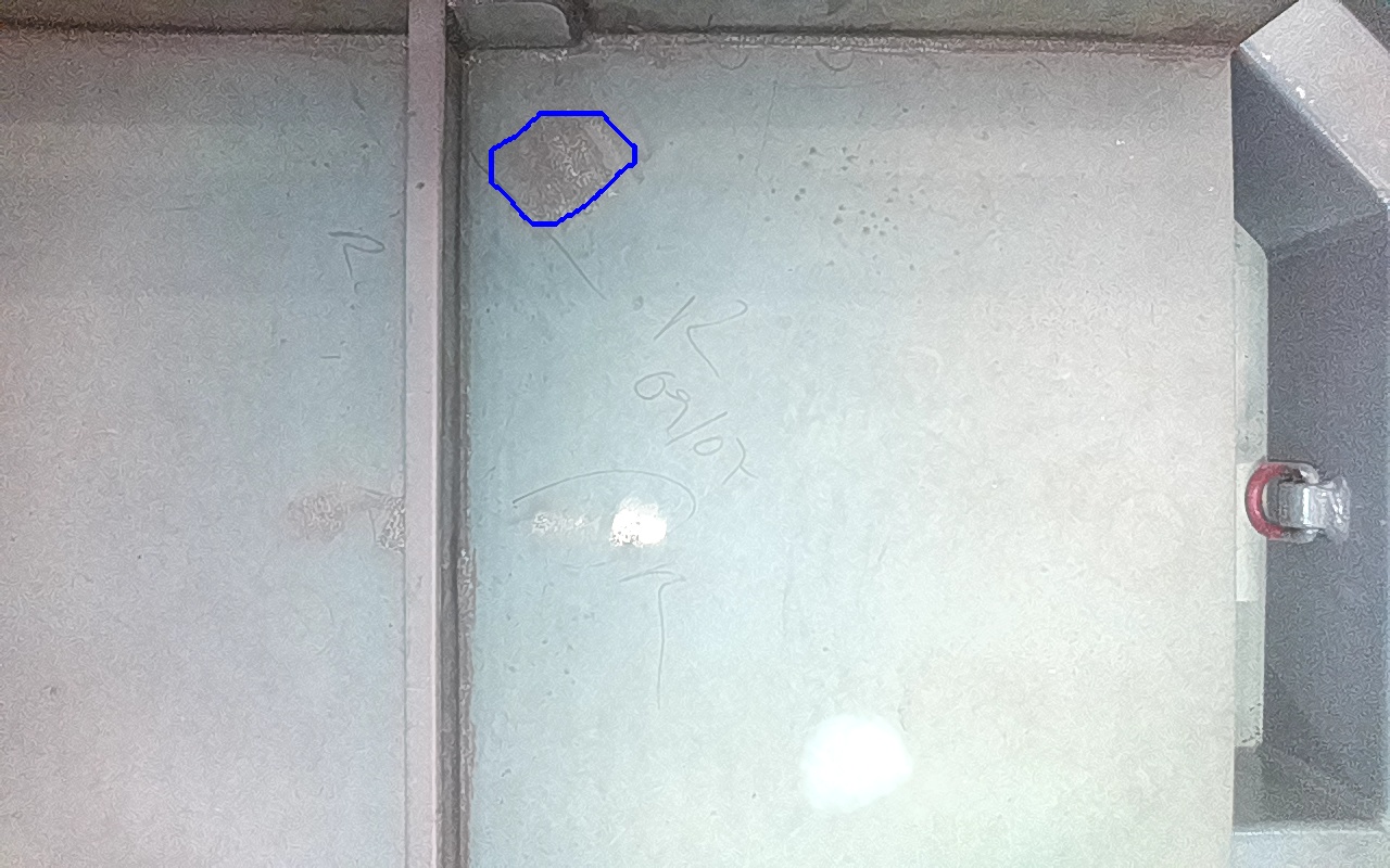 Rayaduras o zonas de metal expuestas con productos de óxido débilmente adherido.
