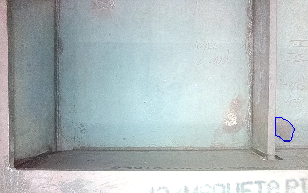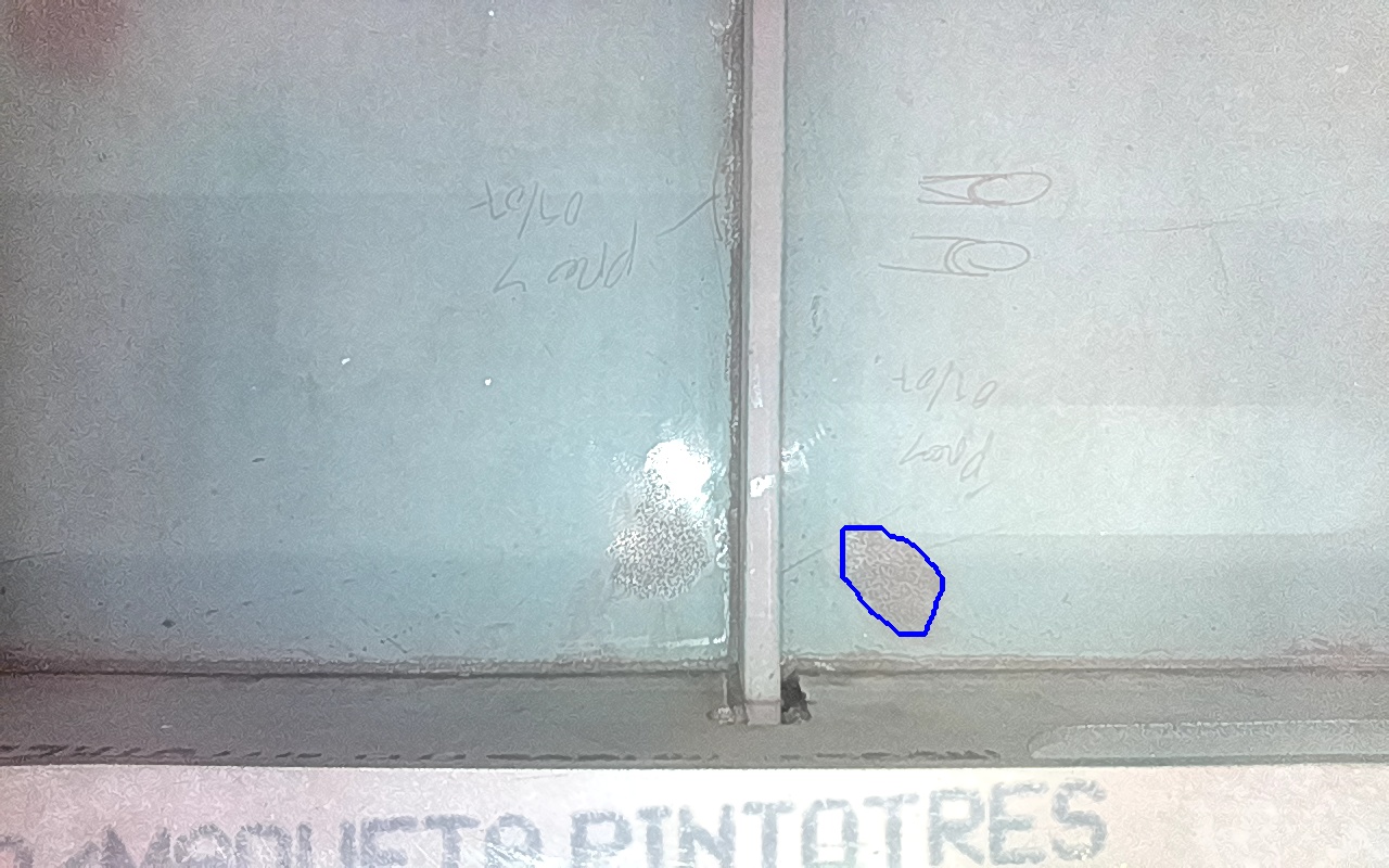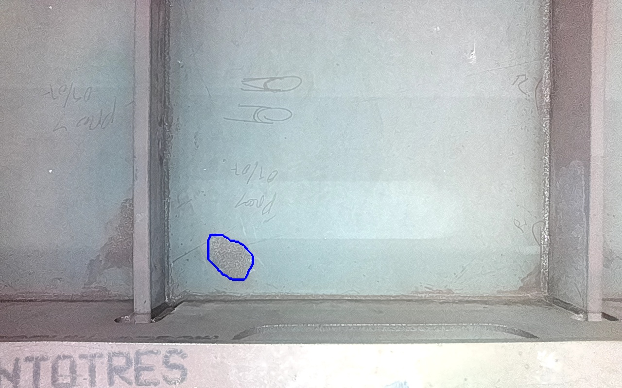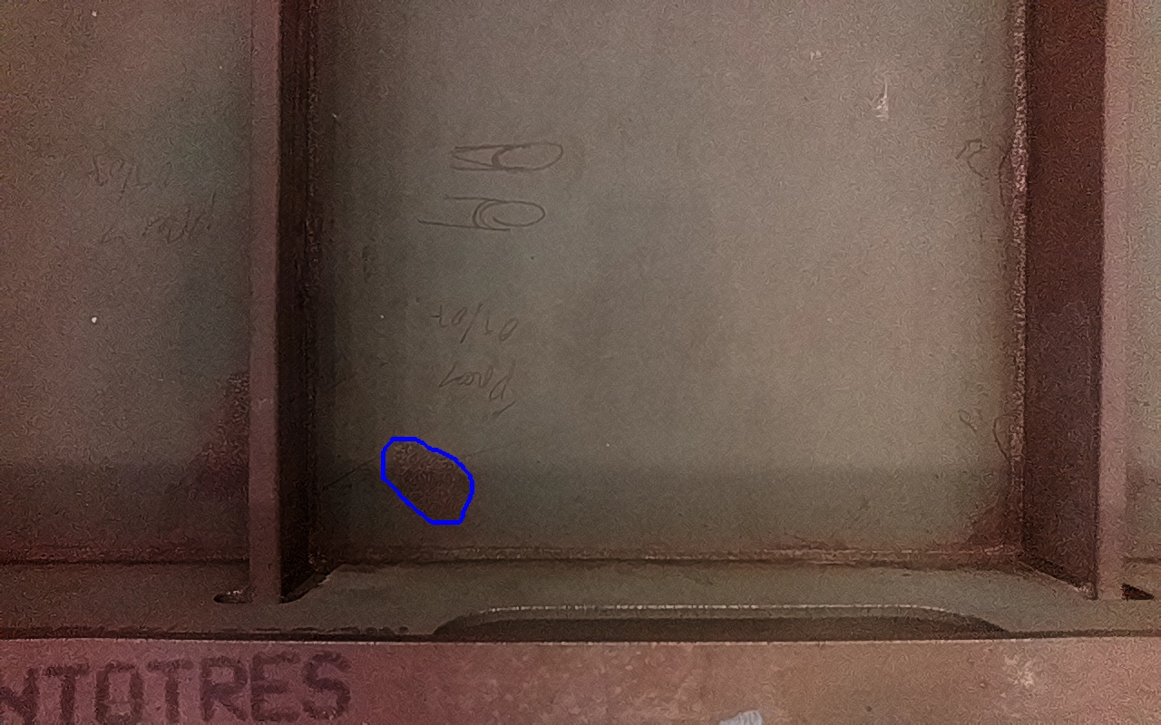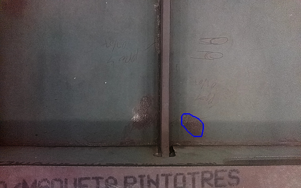 Rayaduras o zonas de metal expuestas con productos de óxido débilmente adherido.