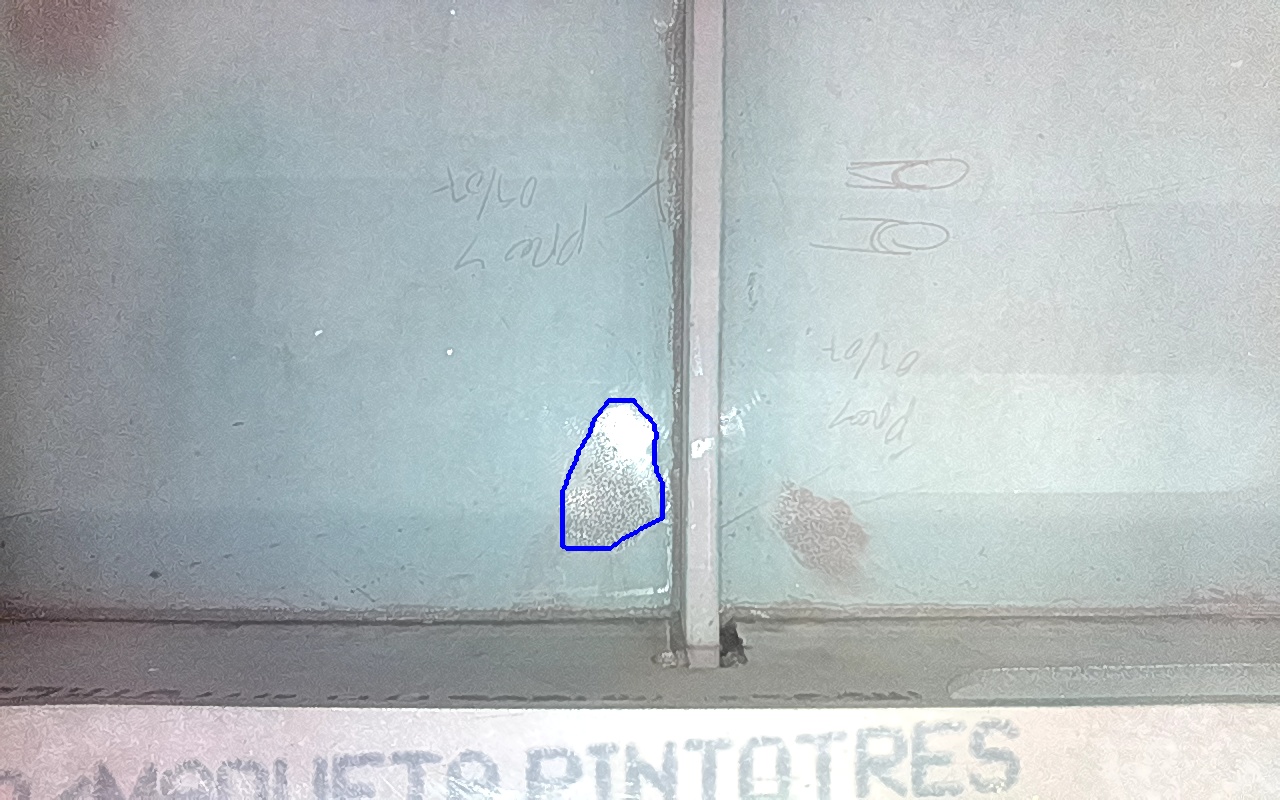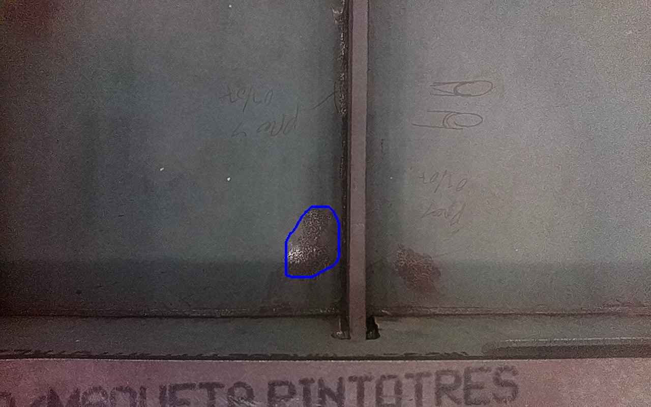 Rayaduras o zonas de metal expuestas con productos de óxido débilmente adherido.