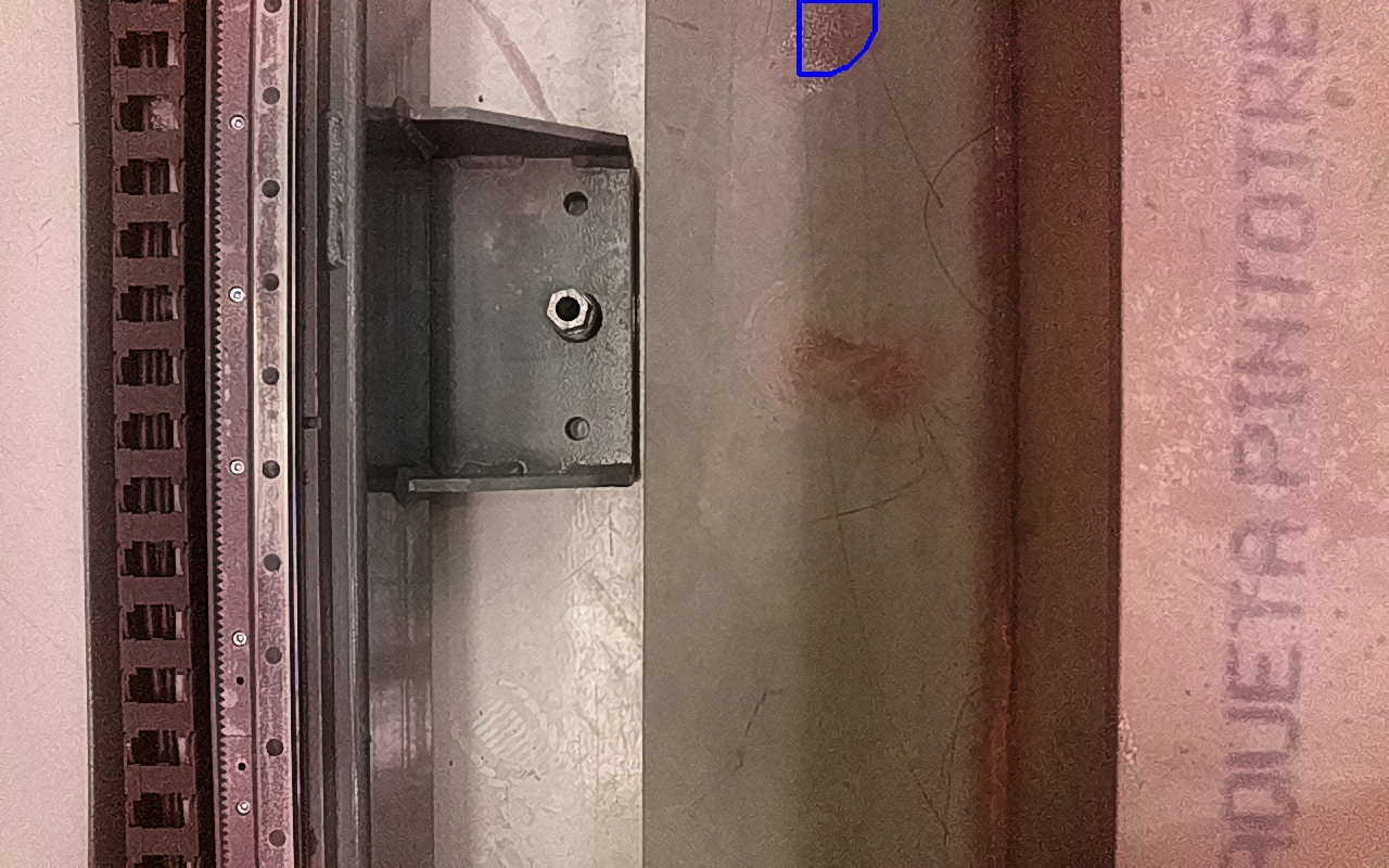 Rayaduras o zonas de metal expuestas con productos de óxido débilmente adherido.