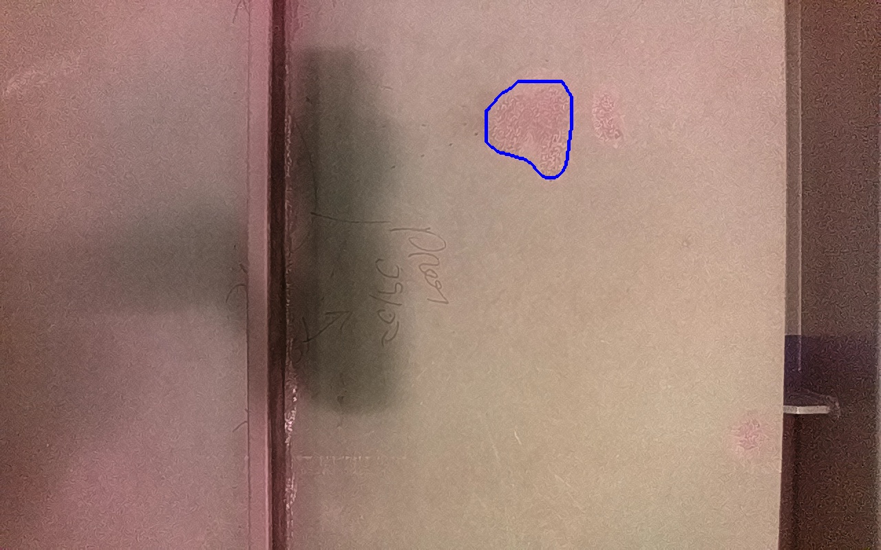 Rayaduras o zonas de metal expuestas con productos de óxido débilmente adherido.