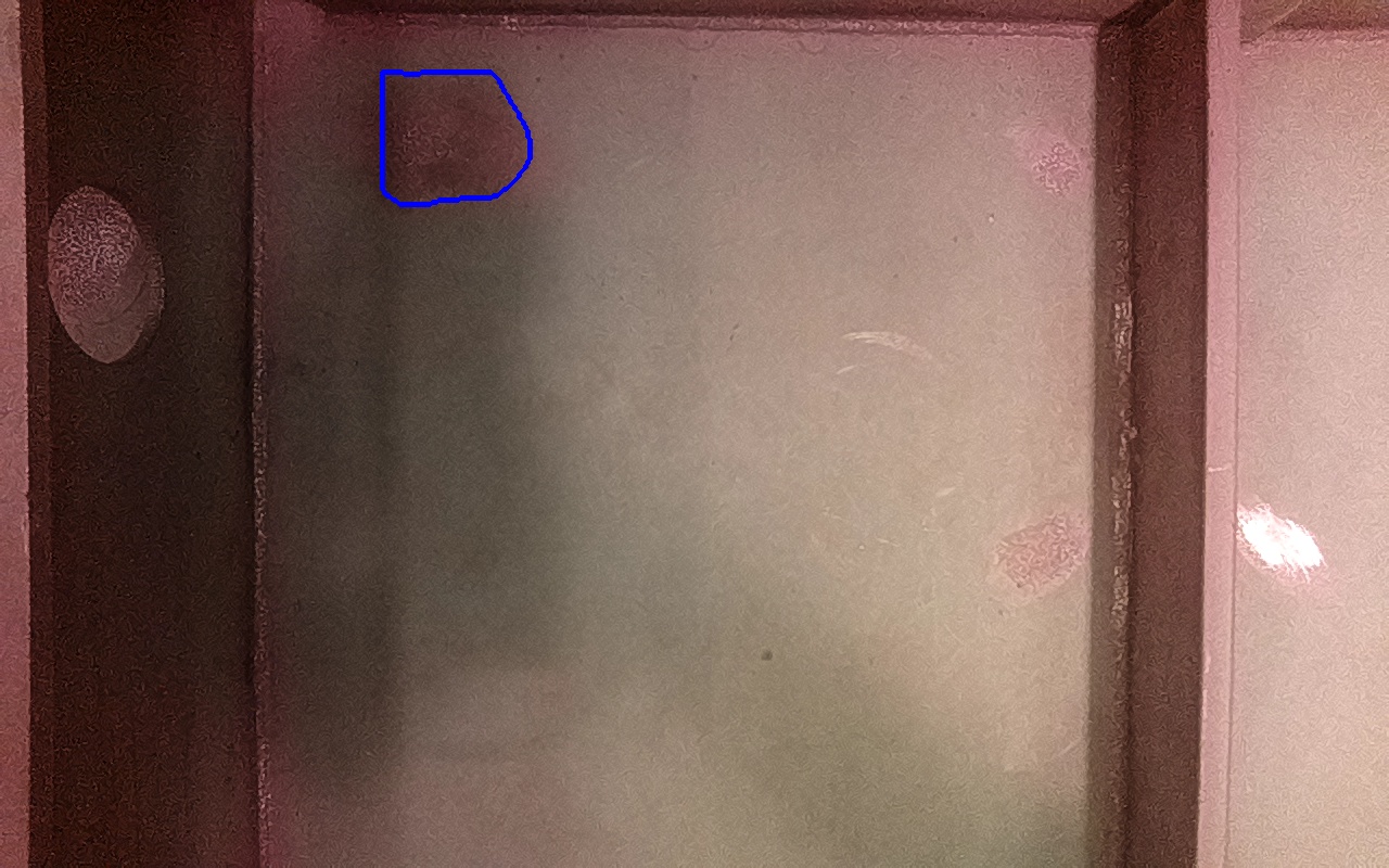 Rayaduras o zonas de metal expuestas con productos de óxido débilmente adherido.