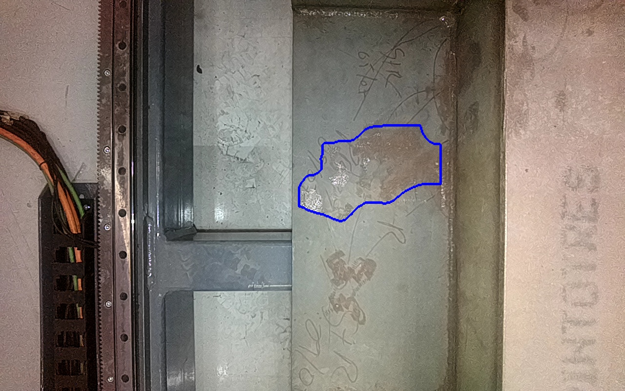 Rayaduras o zonas de metal expuestas con productos de óxido débilmente adherido.