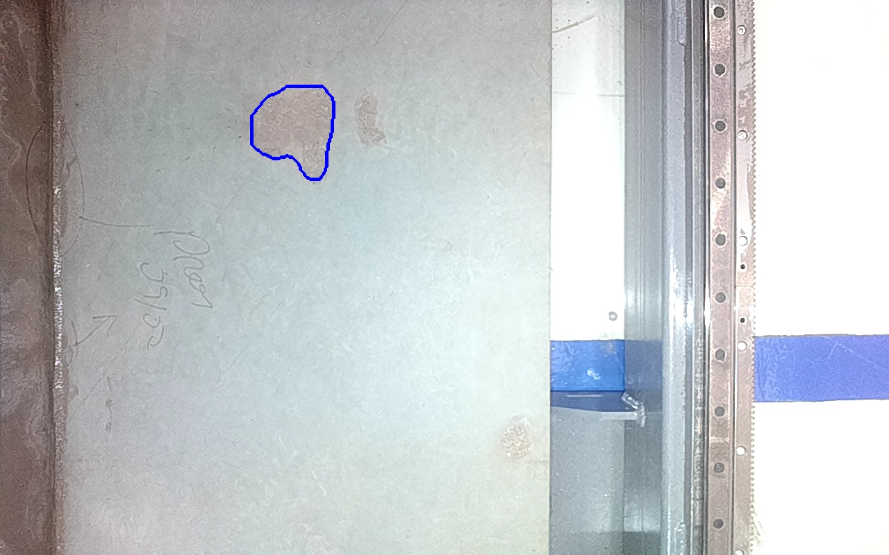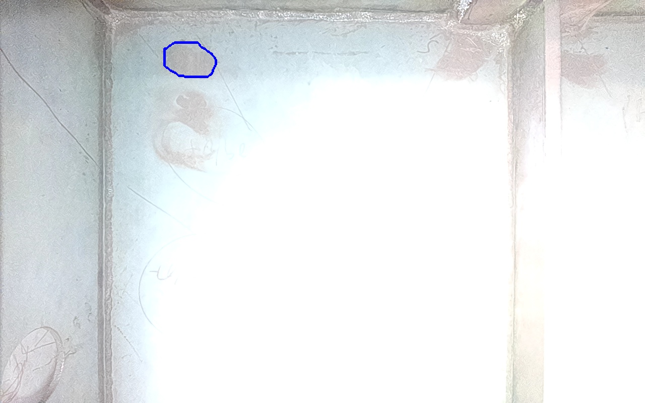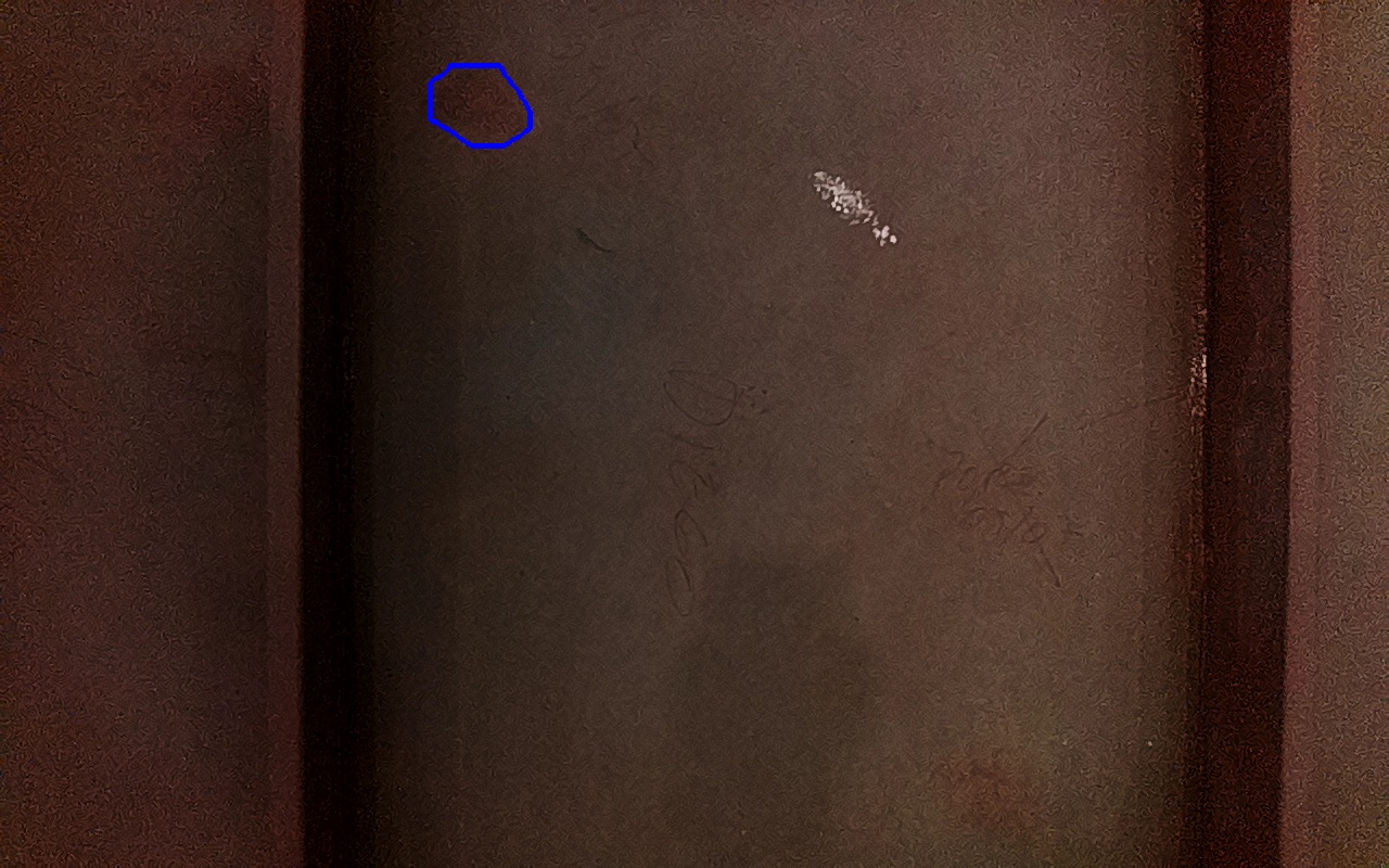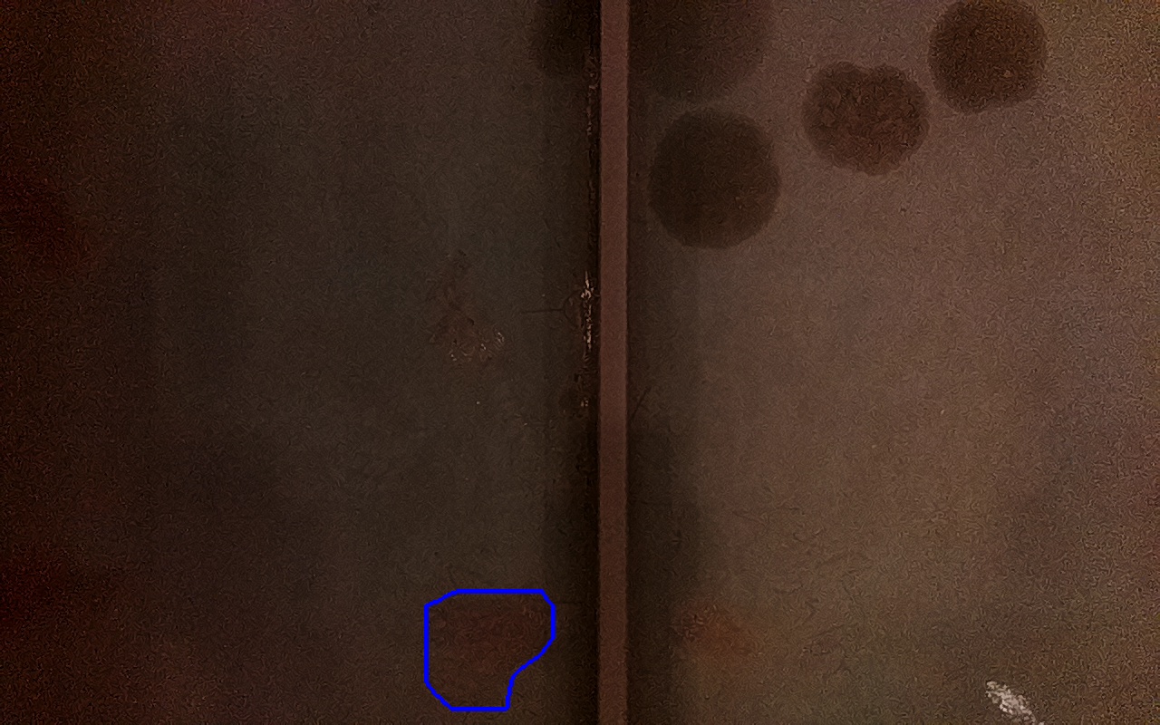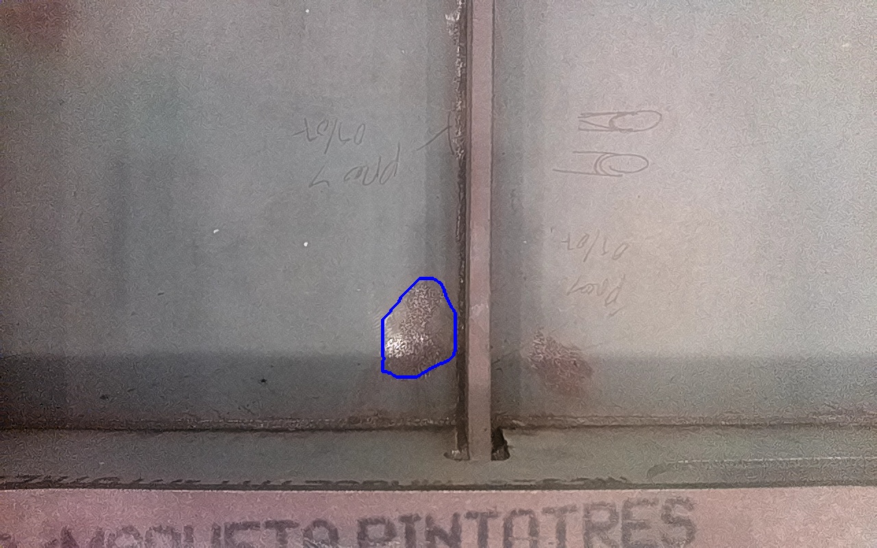 Rayaduras o zonas de metal expuestas con productos de óxido débilmente adherido.