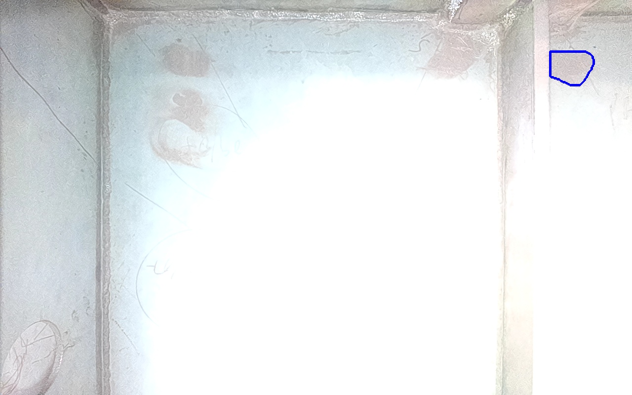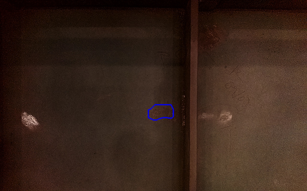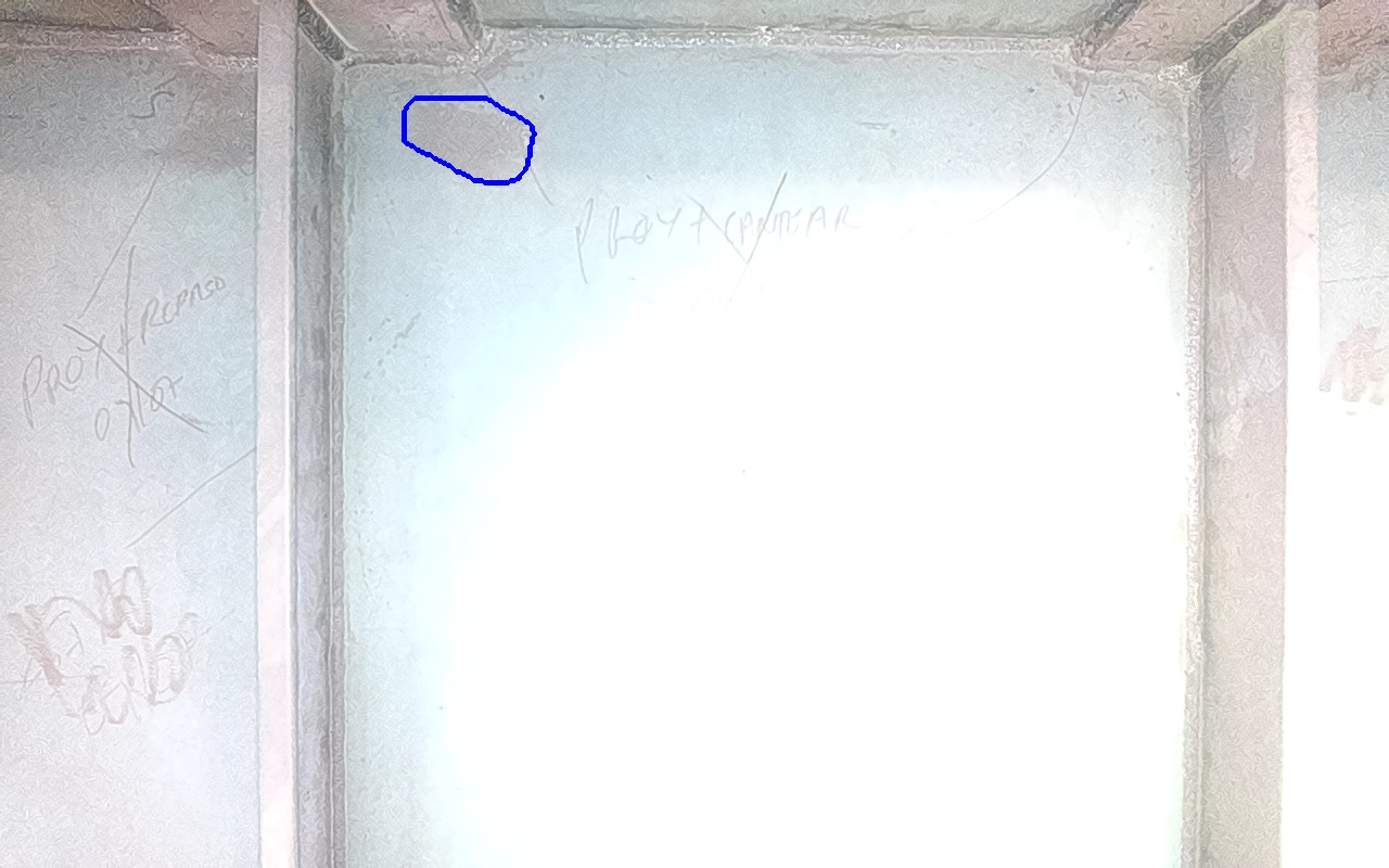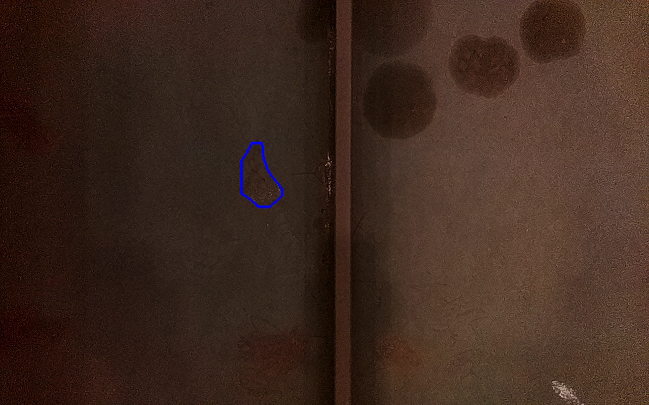 Rayaduras o zonas de metal expuestas con productos de óxido débilmente adherido.