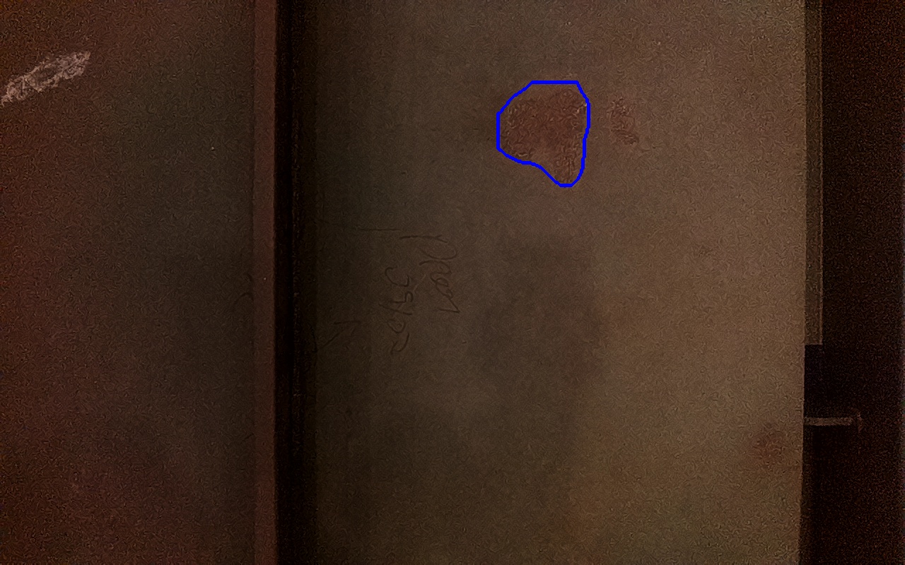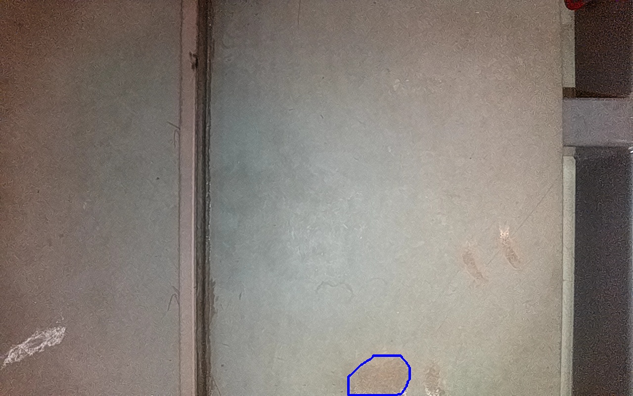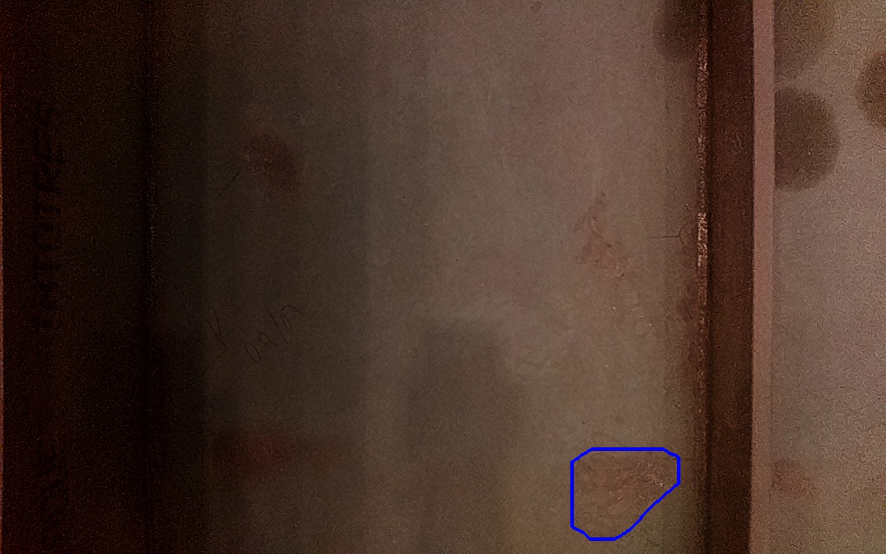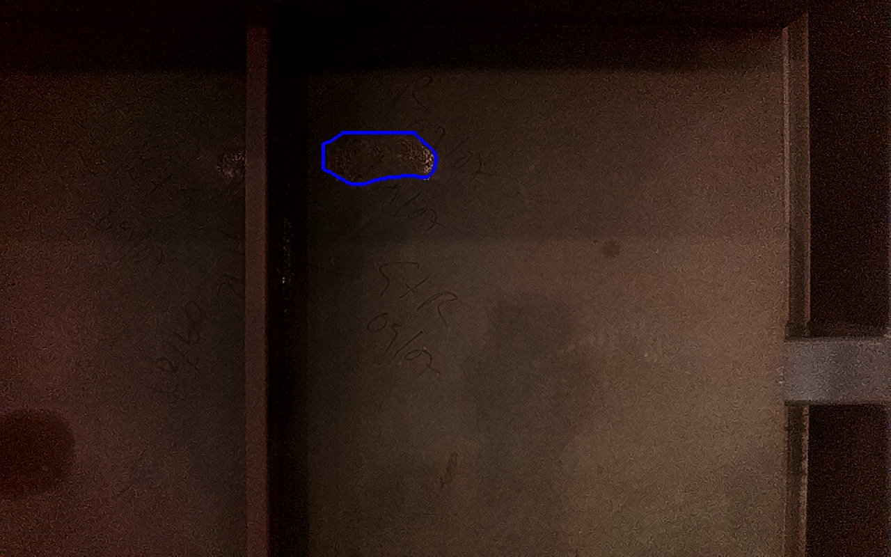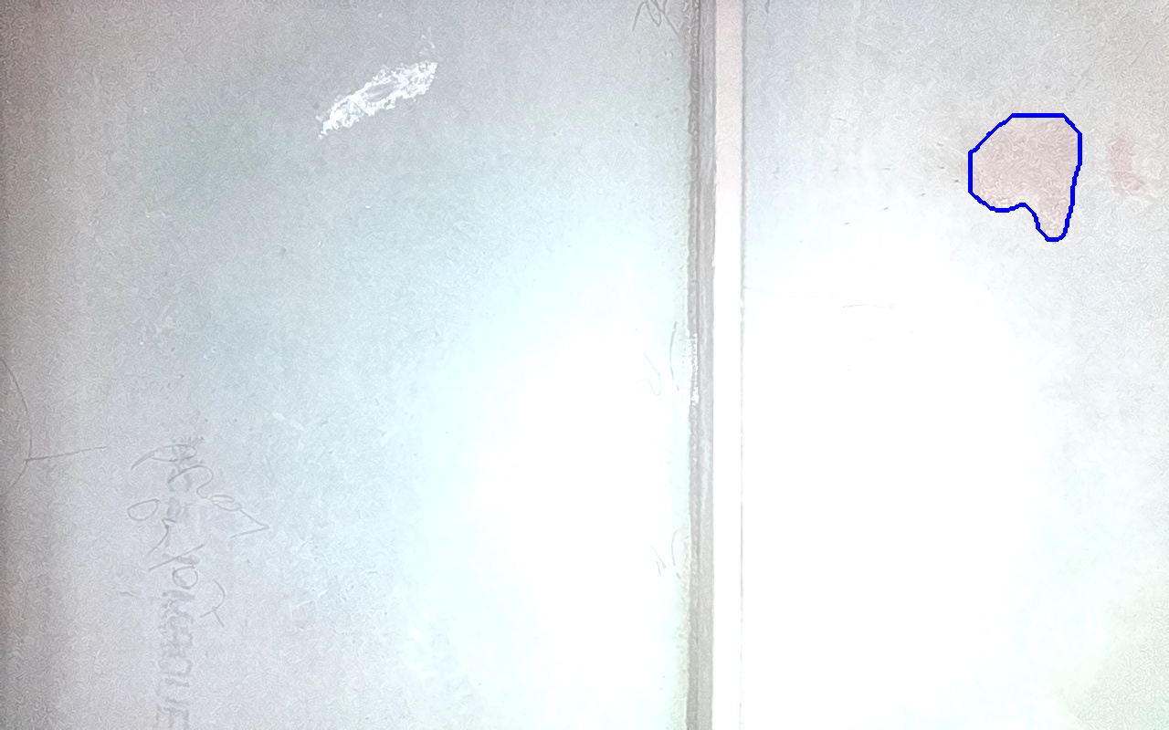 Rayaduras o zonas de metal expuestas con productos de óxido débilmente adherido.