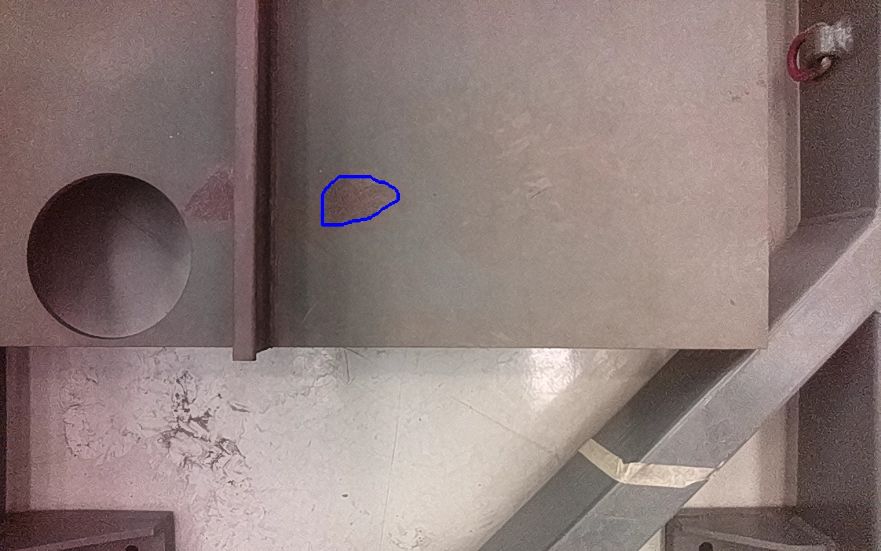 Rayaduras o zonas de metal expuestas con productos de óxido débilmente adherido.