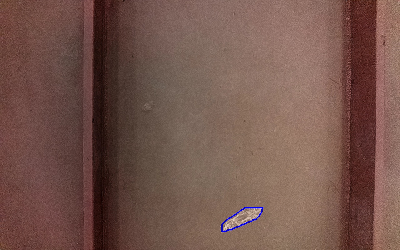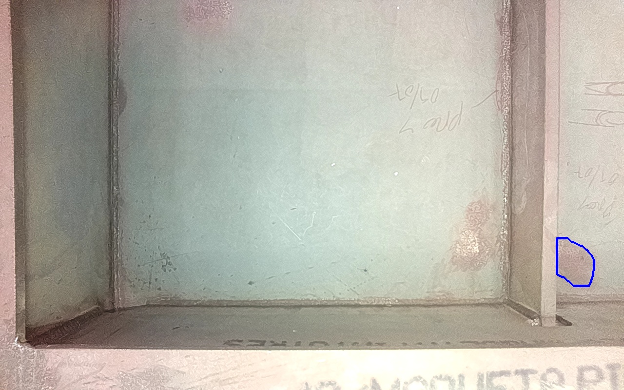 Rayaduras o zonas de metal expuestas con productos de óxido débilmente adherido.