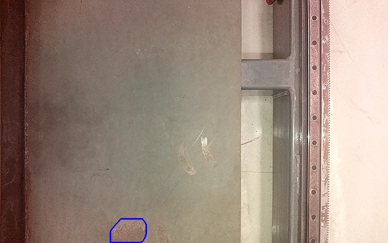 Rayaduras, marcas, daños por impacto, abrasión o zonas de metal expuestas con apariencia metálica y libre de productos de óxido o con trazas firmemente adheridas.