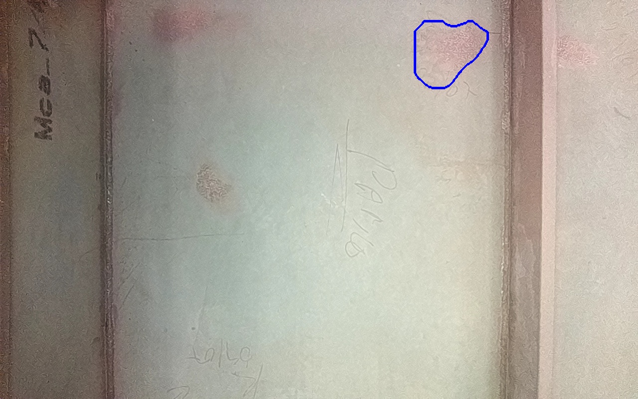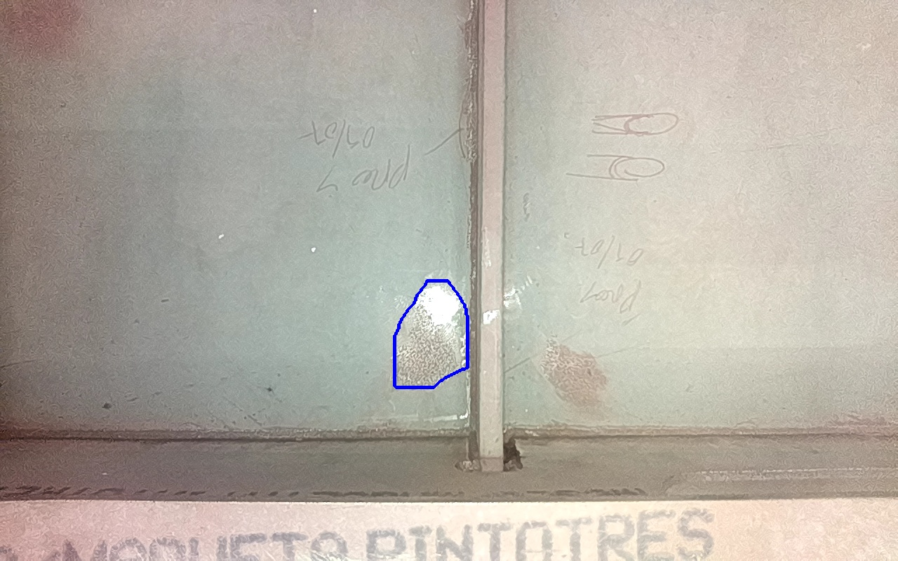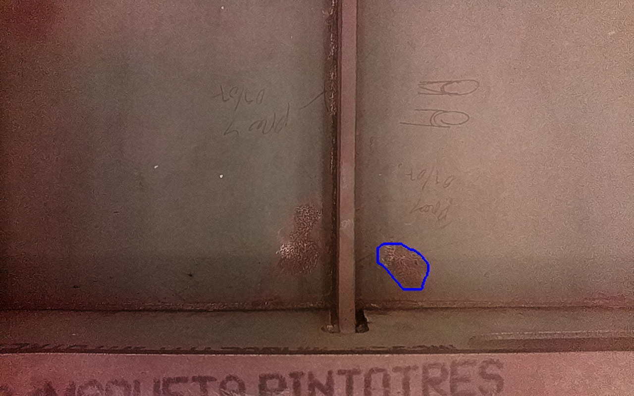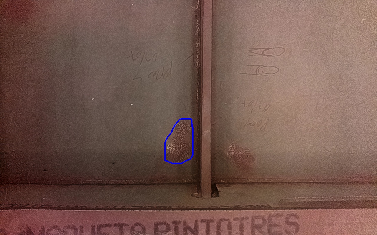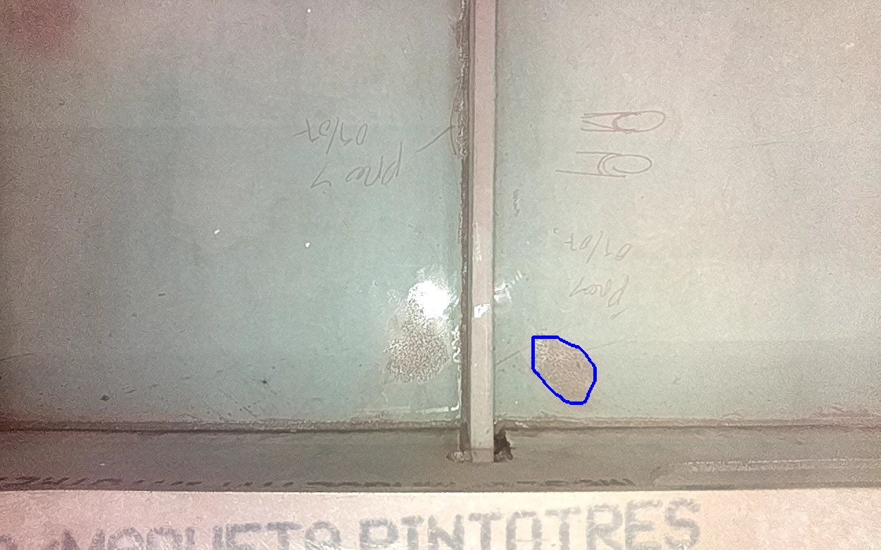 Rayaduras o zonas de metal expuestas con productos de óxido débilmente adherido.