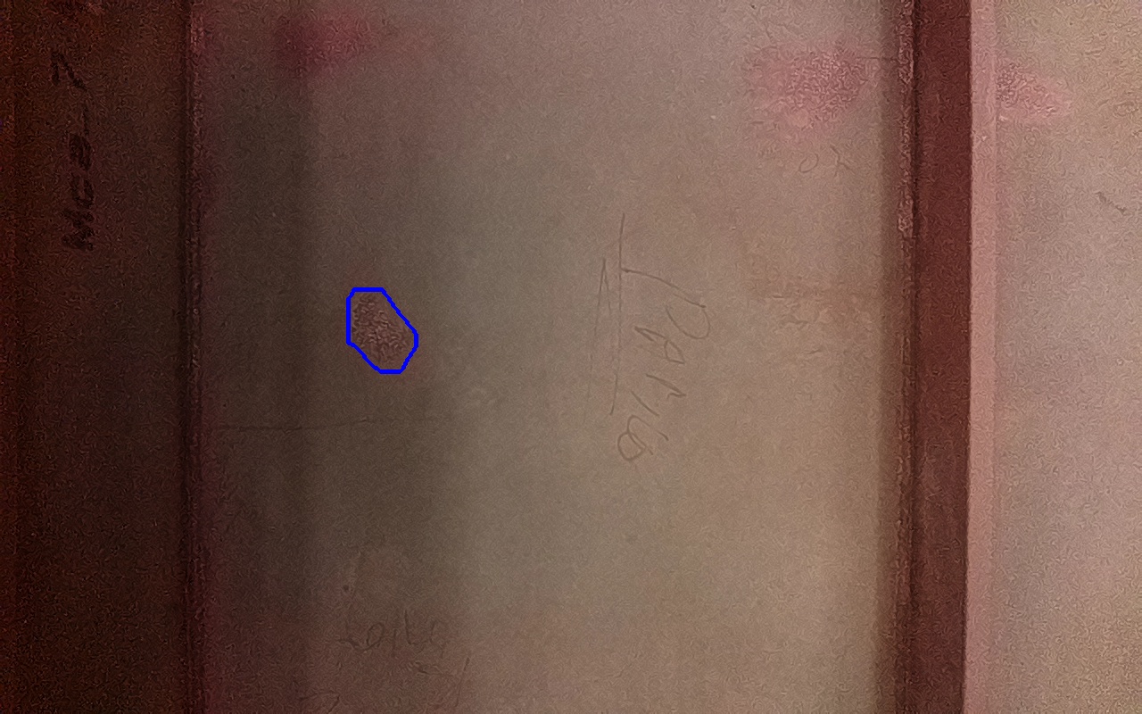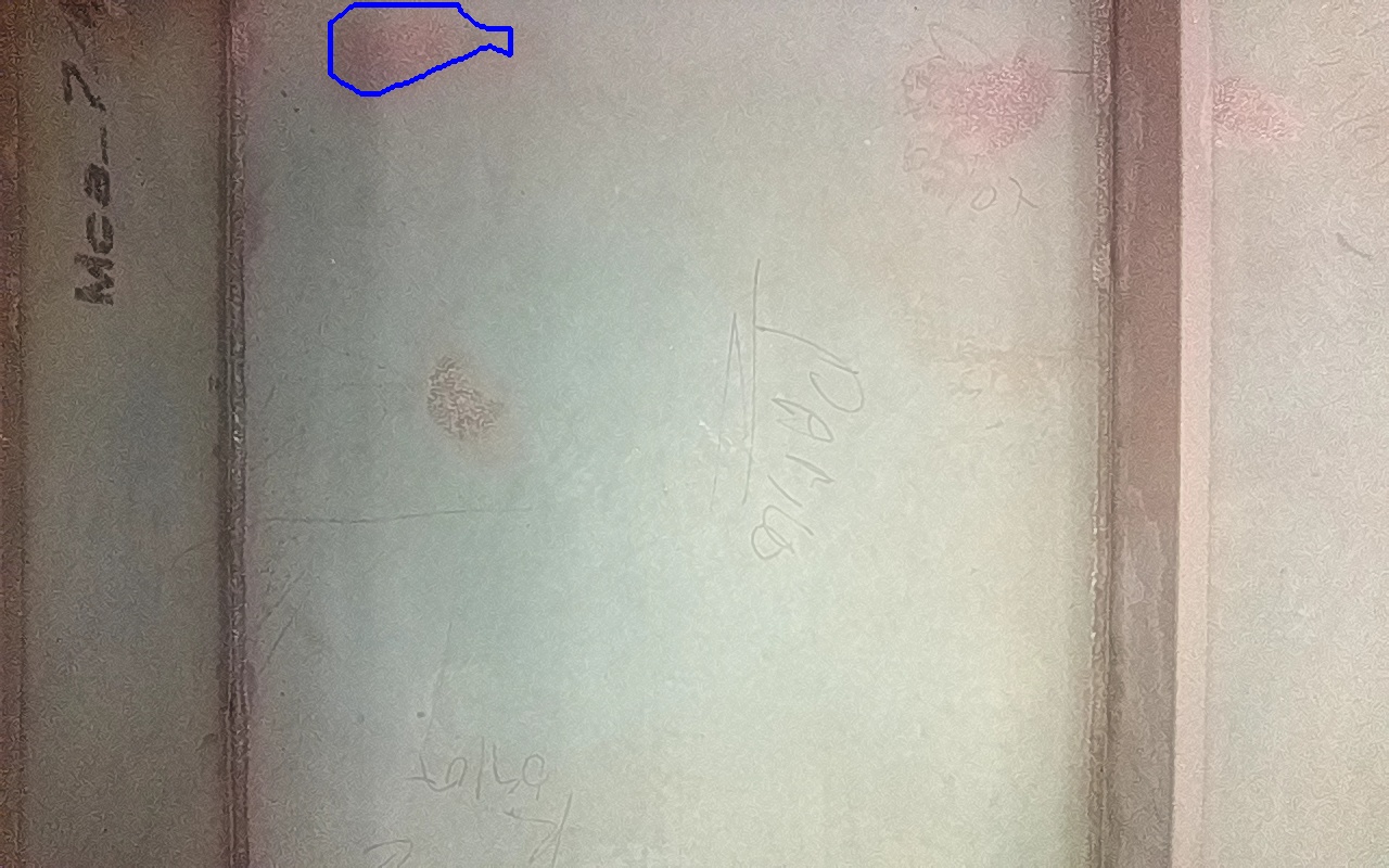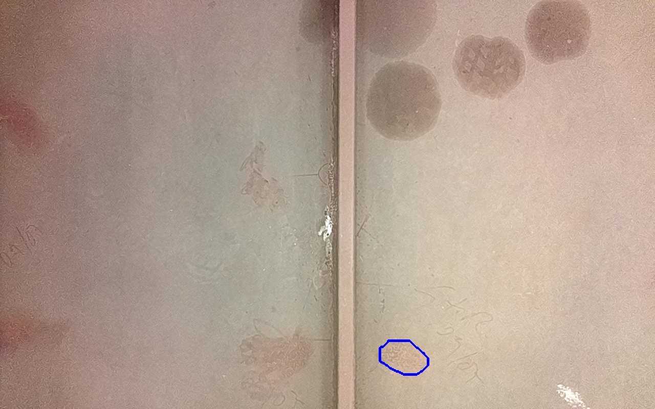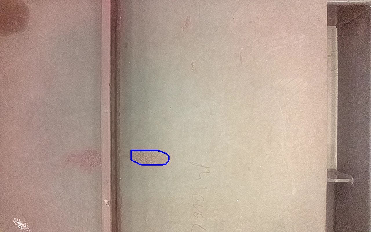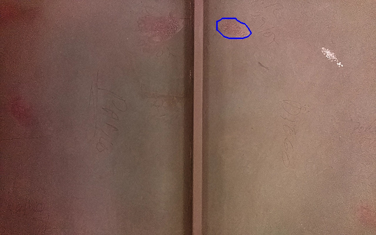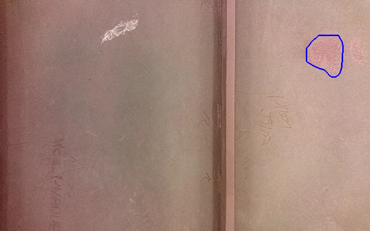 Rayaduras o zonas de metal expuestas con productos de óxido débilmente adherido.