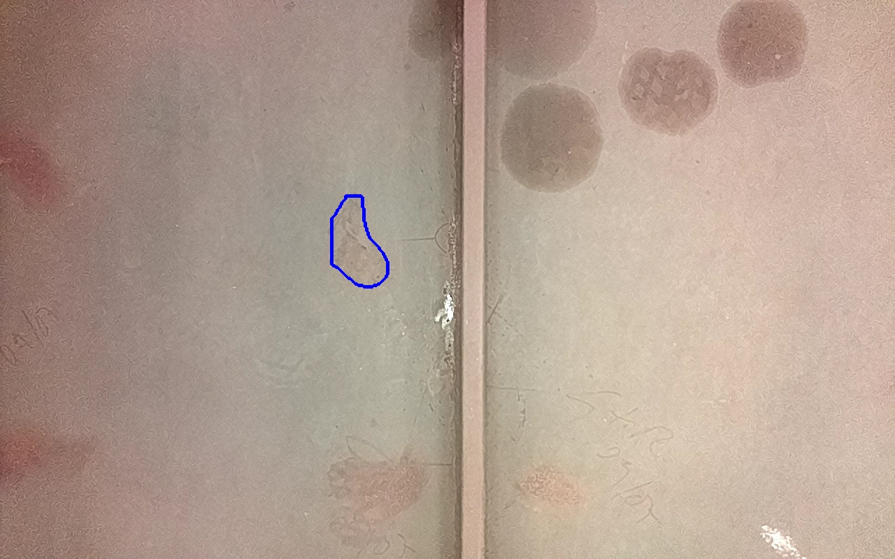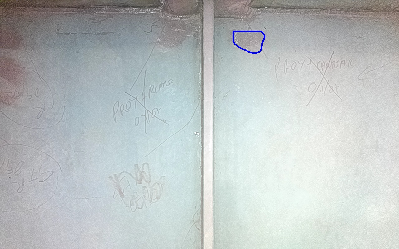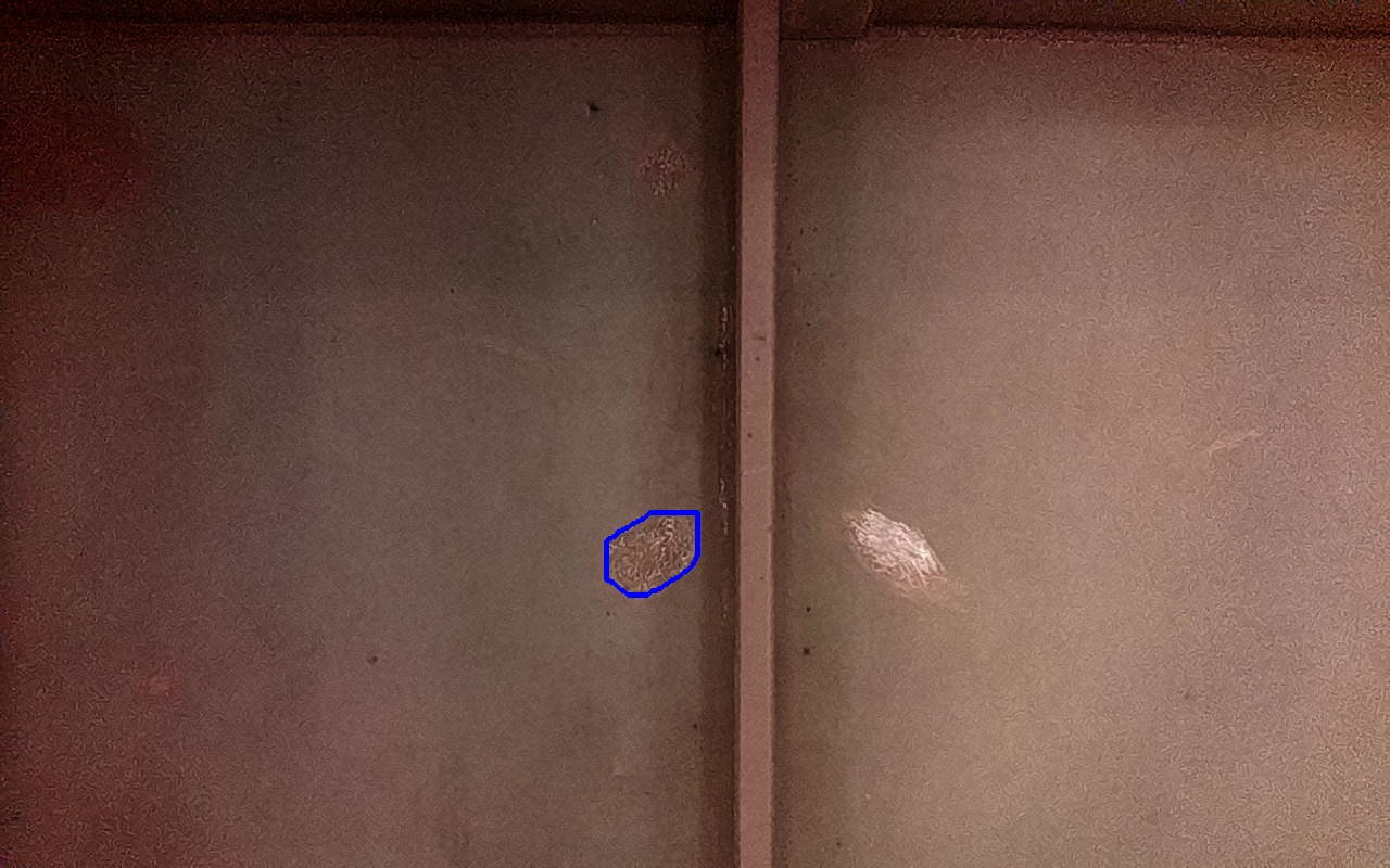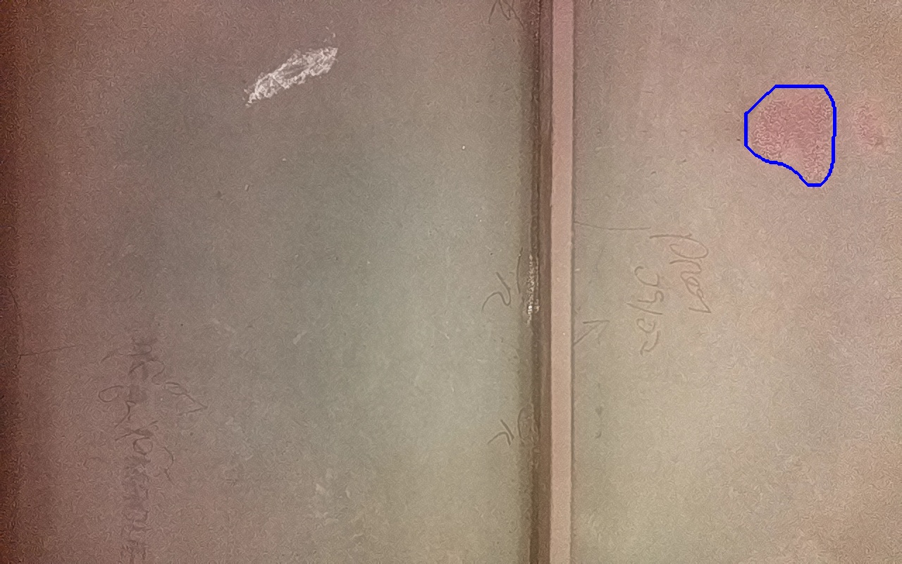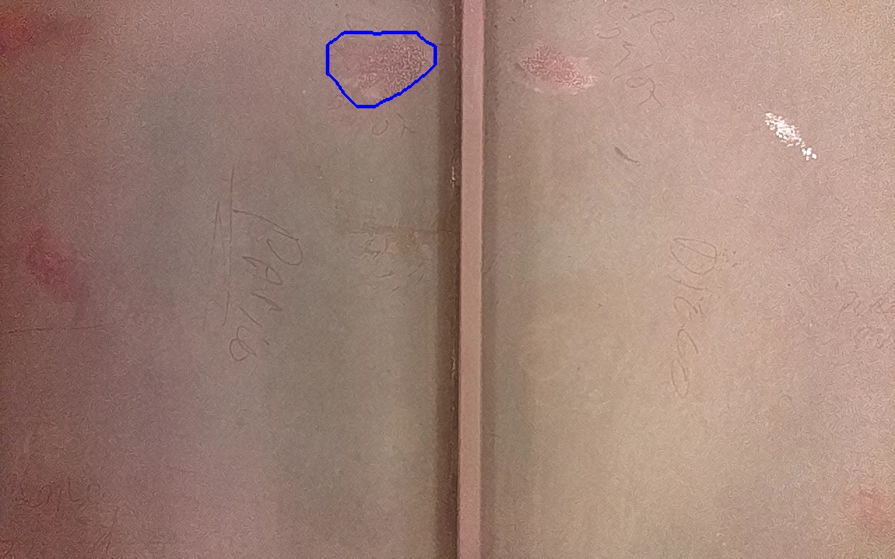 Rayaduras o zonas de metal expuestas con productos de óxido débilmente adherido.