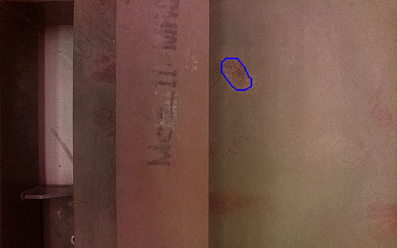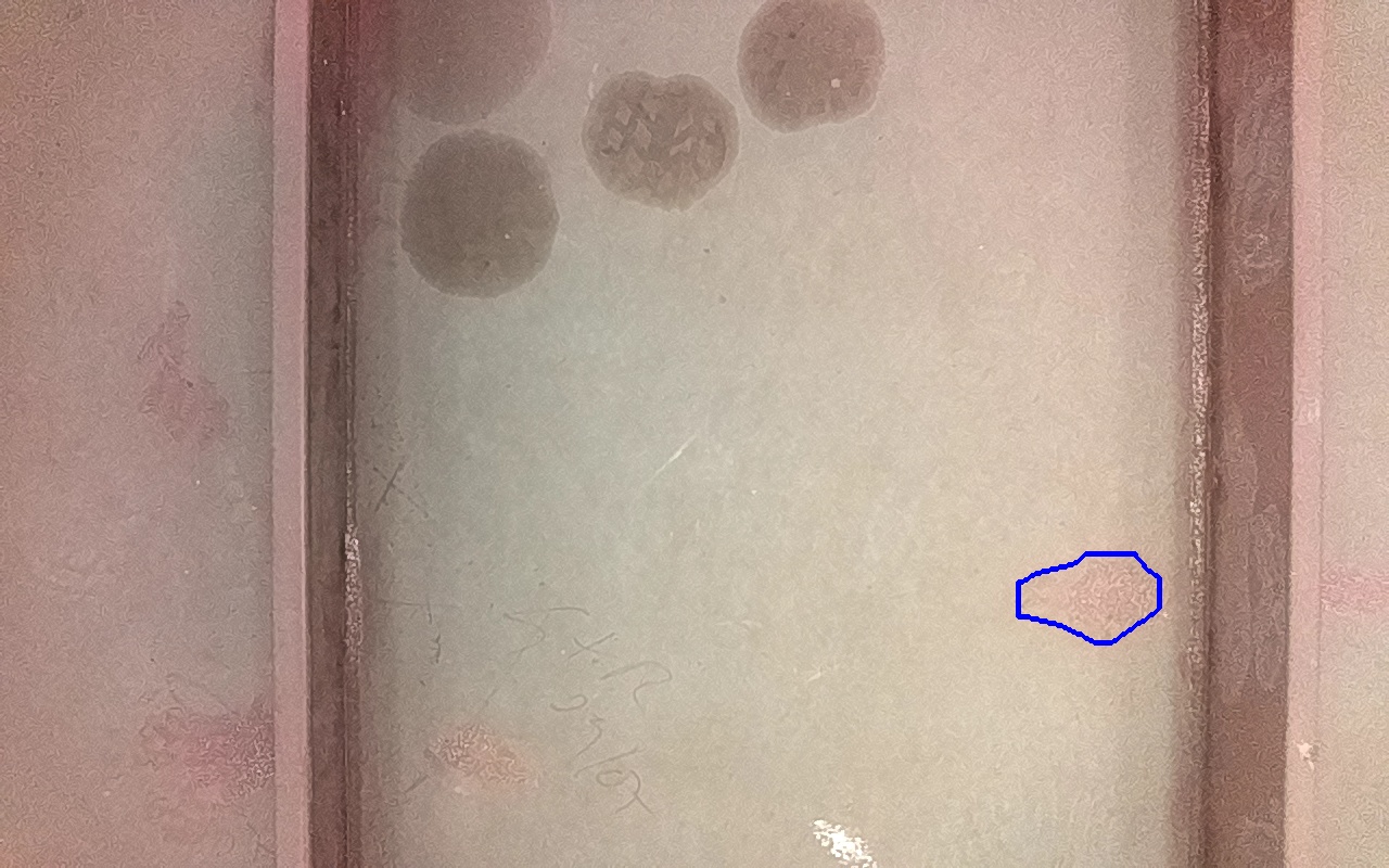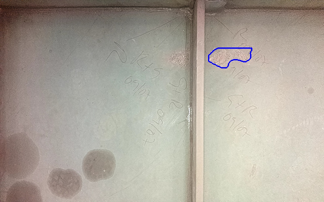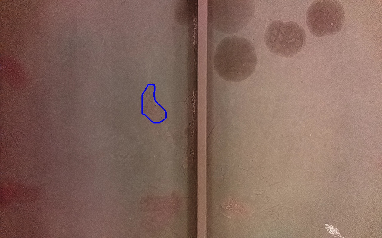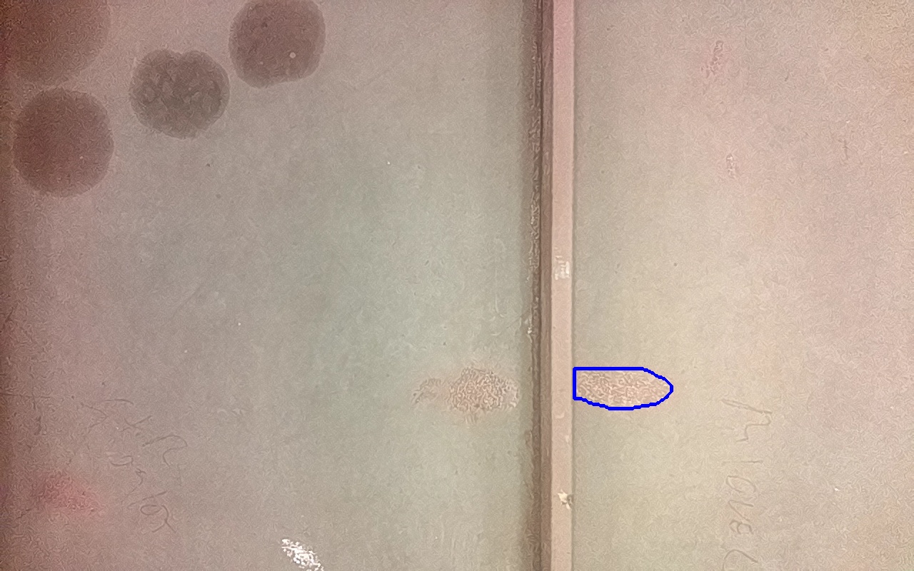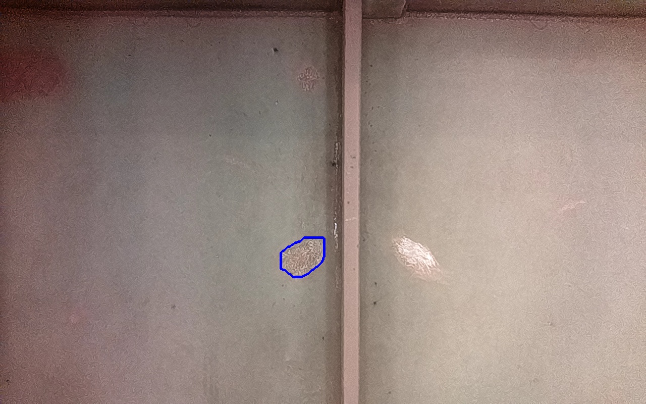 Rayaduras o zonas de metal expuestas con productos de óxido débilmente adherido.