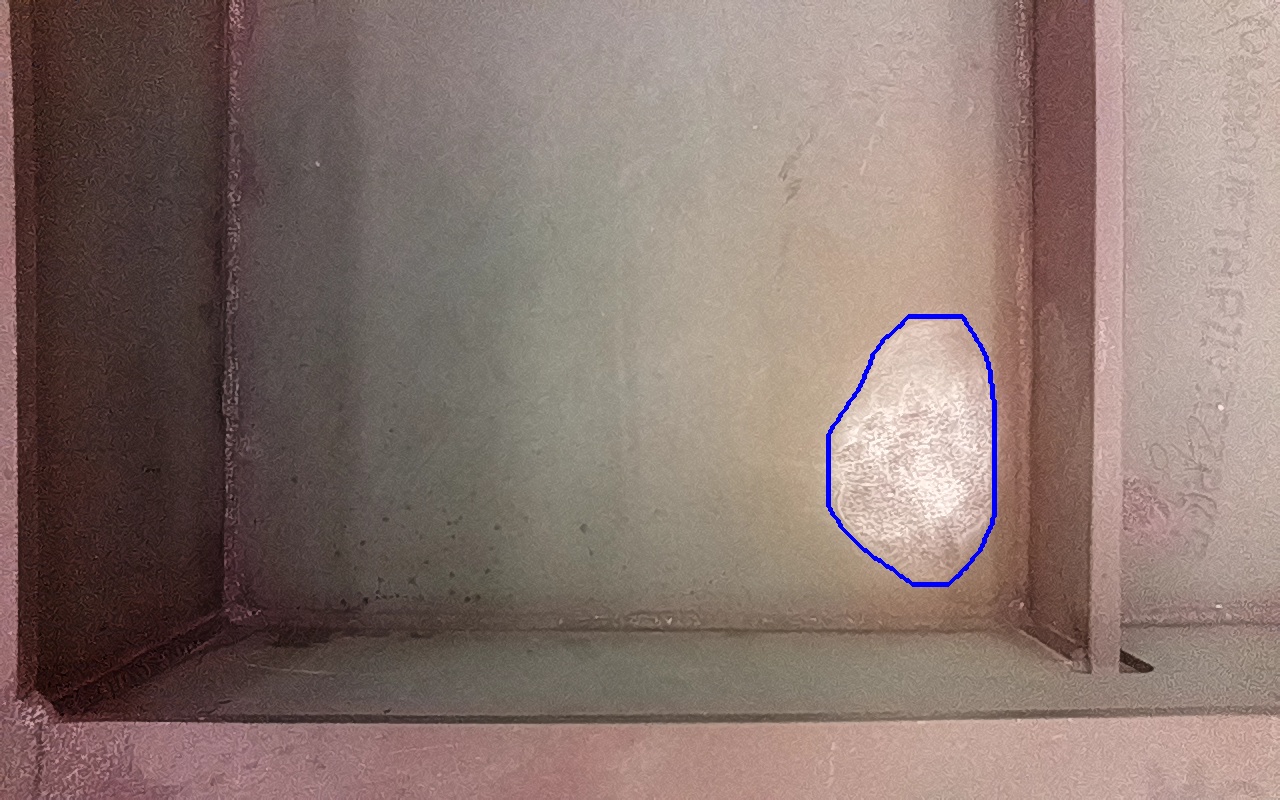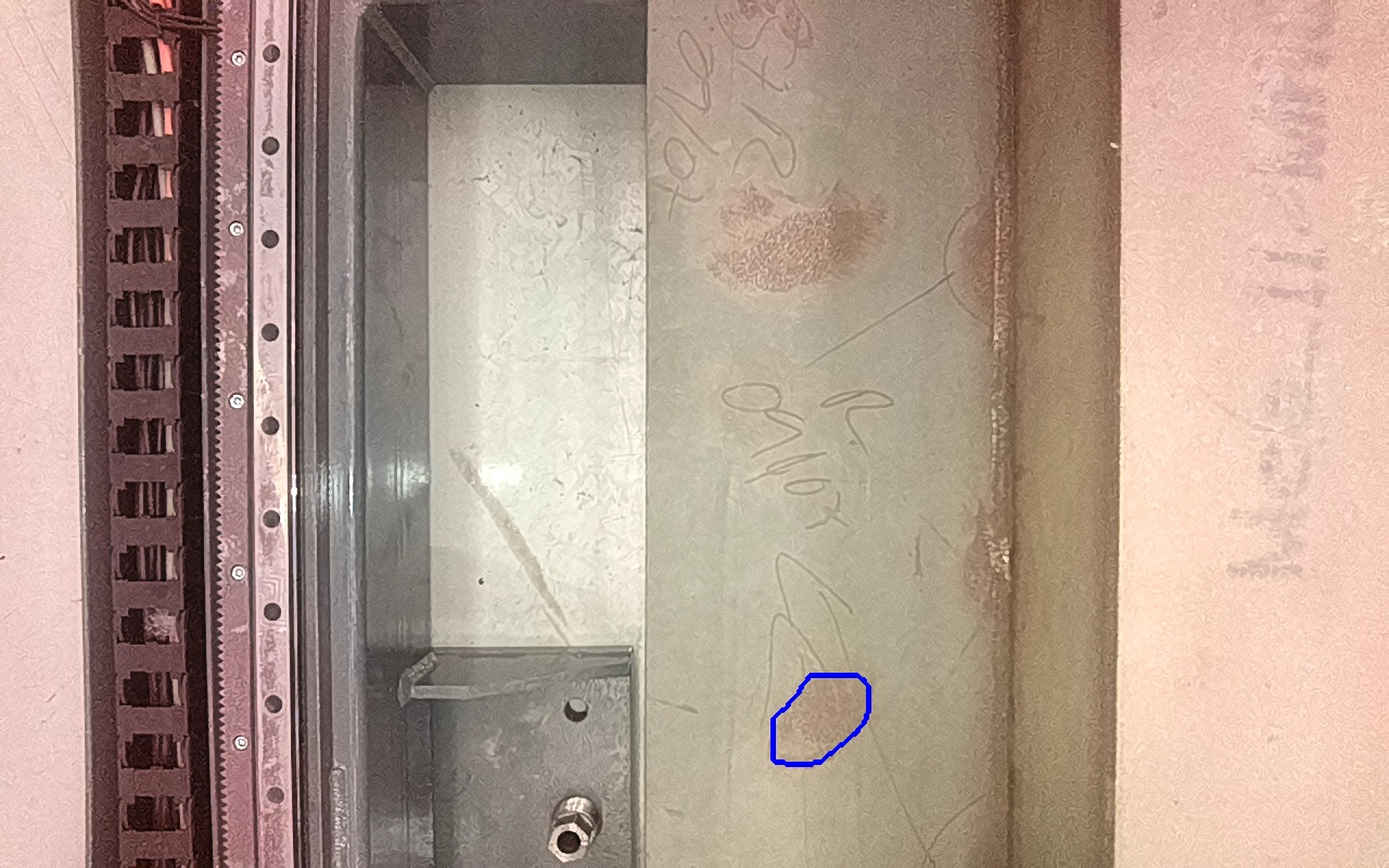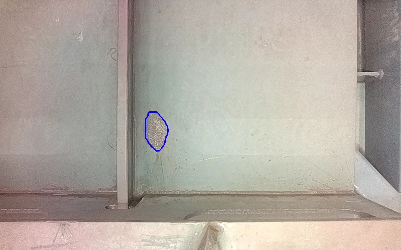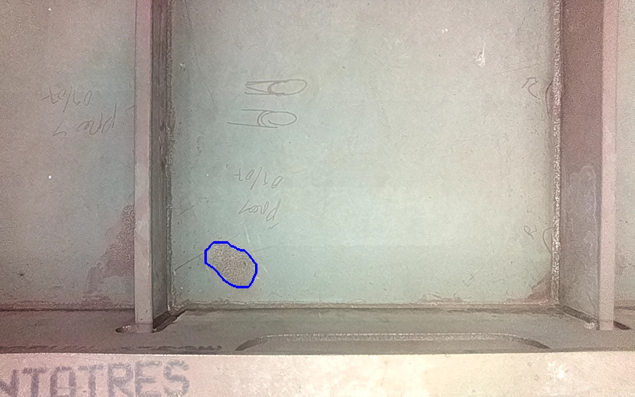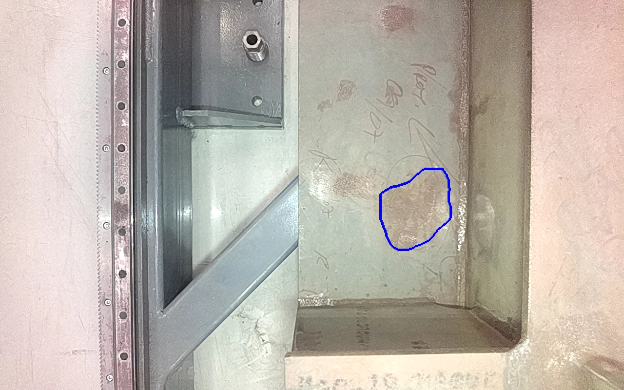 Residuos metálicos adheridos a la superficie, provenientes de operaciones adyacentes de fabricación y montaje. |