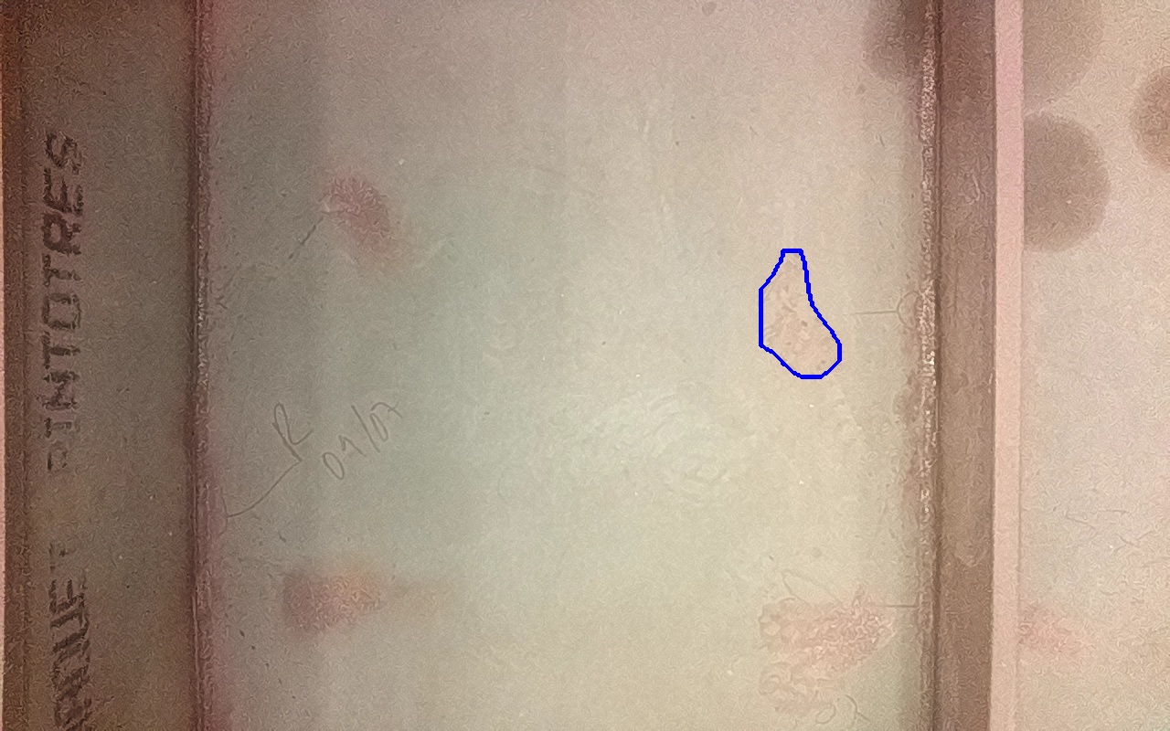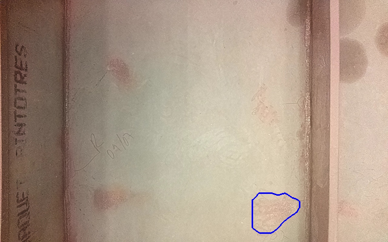 Depósitos de óxido férrico débilmente adherido.
