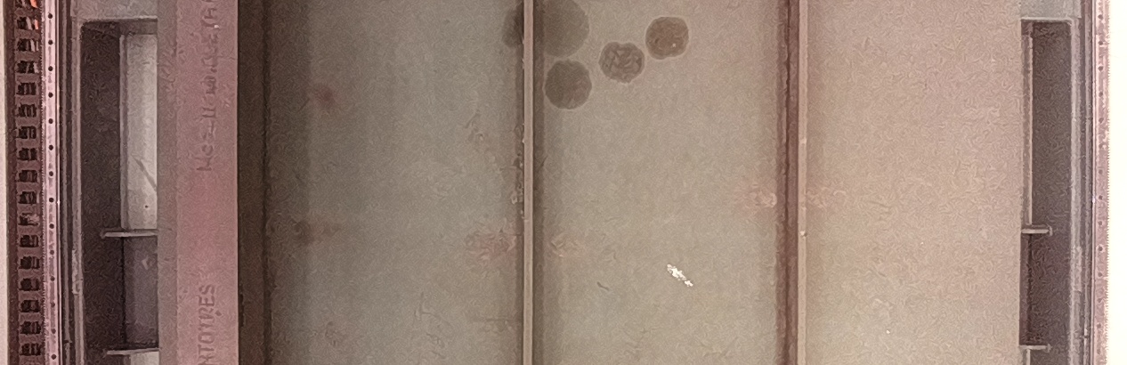 Residuos metálicos adheridos a la superficie, provenientes de operaciones adyacentes de fabricación y montaje.